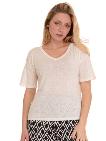 Pennyblack Carton soft T-shirt, v-neck, half sleeve, linen fabric, dropped shoulder, composition: 96% linen, 4%...