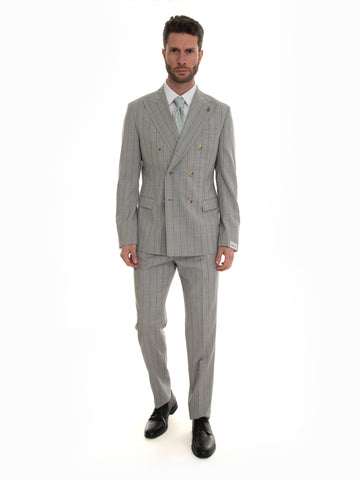 2-button men's suit, double-breasted, pinstriped pattern, classic trousers, pleats on the front, 17 cm hem,...