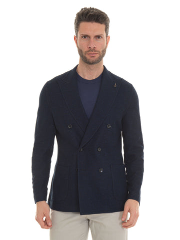Deconstructed unlined jacket, double breasted, patch pockets, textured fabric, stretch fabric, jacket length 72cm (for...