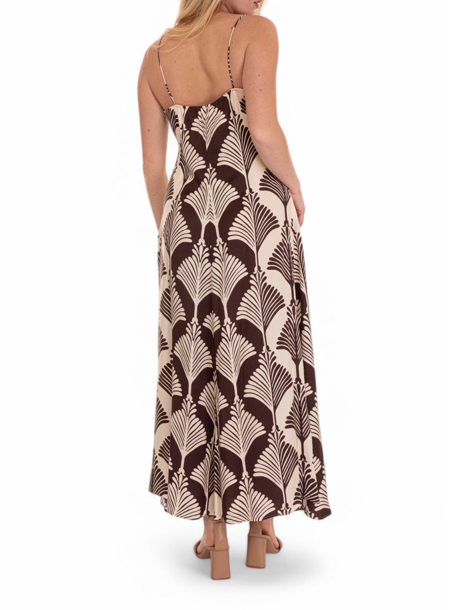 Pennyblack Albenga long dress with straps, drop on the front, side zip fastening, palm tree pattern, lined, composition: 100% viscose, interior: 100% polyester, line: PENNYBLACK.