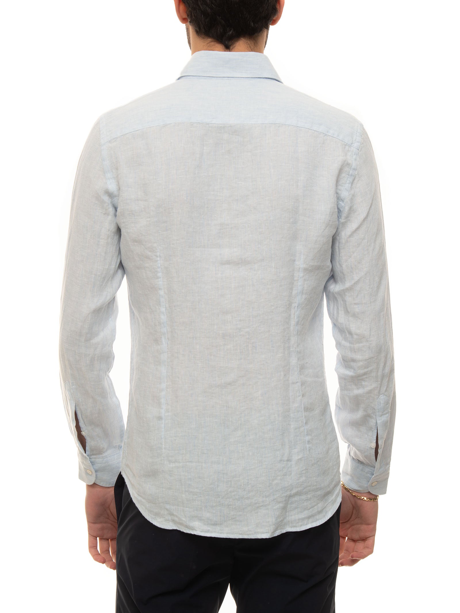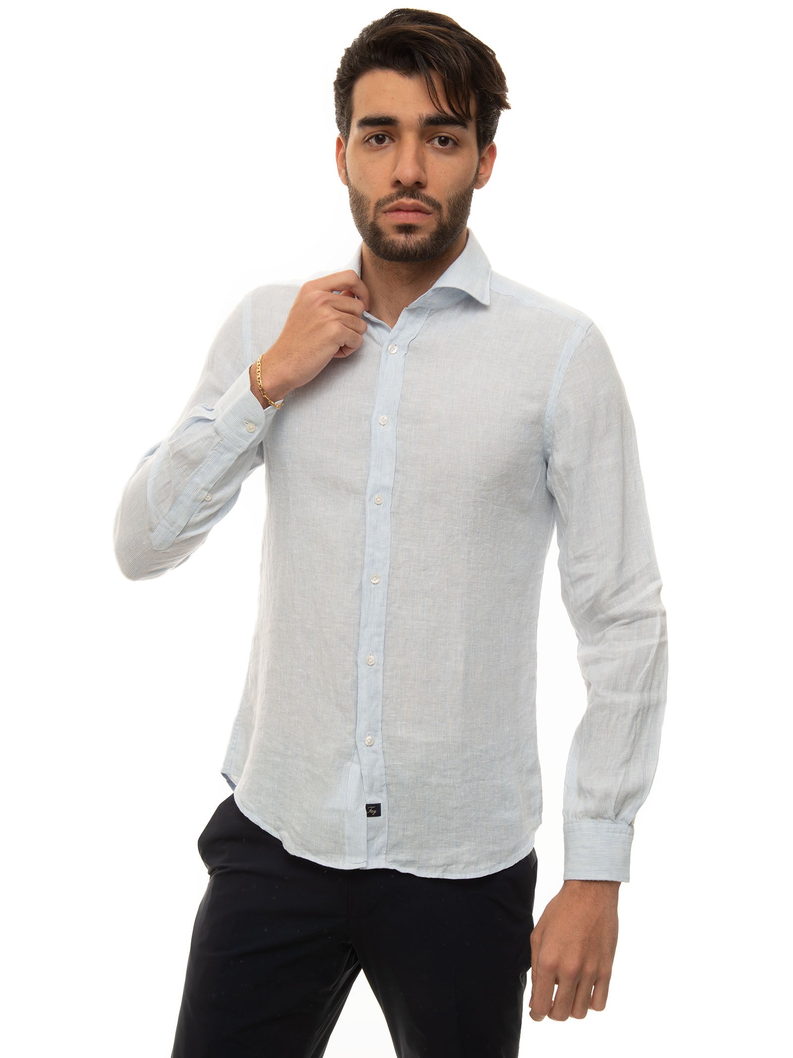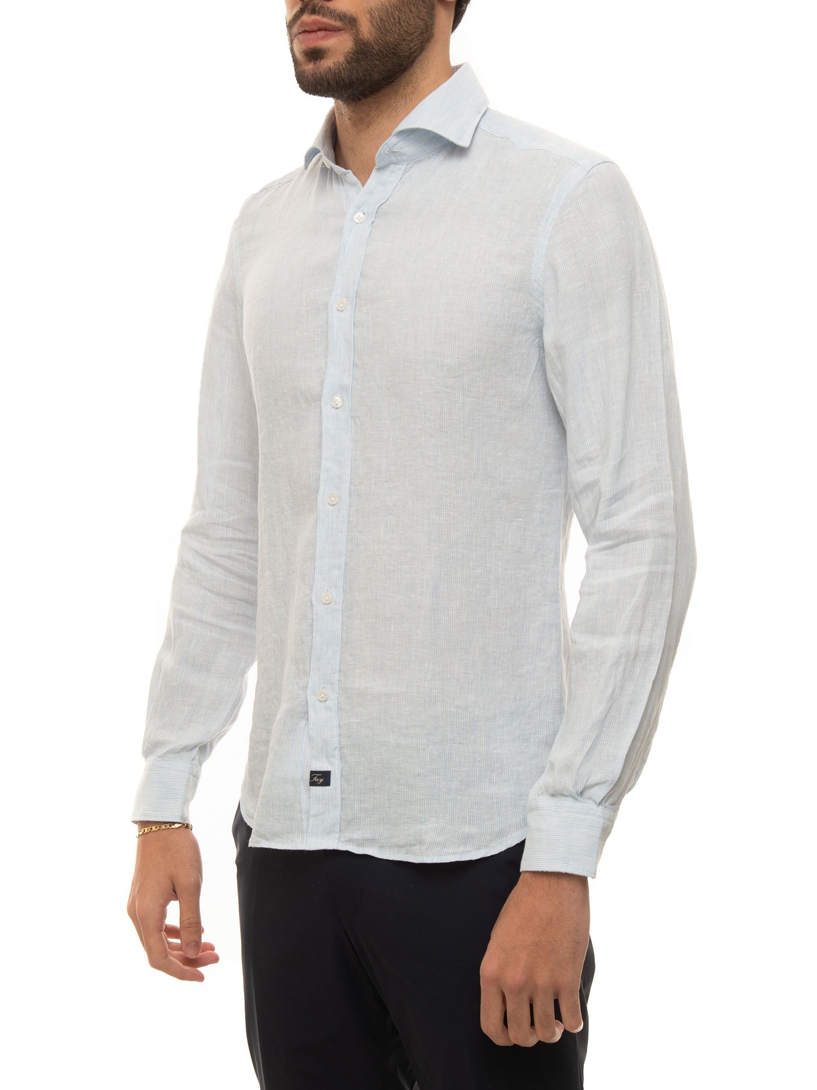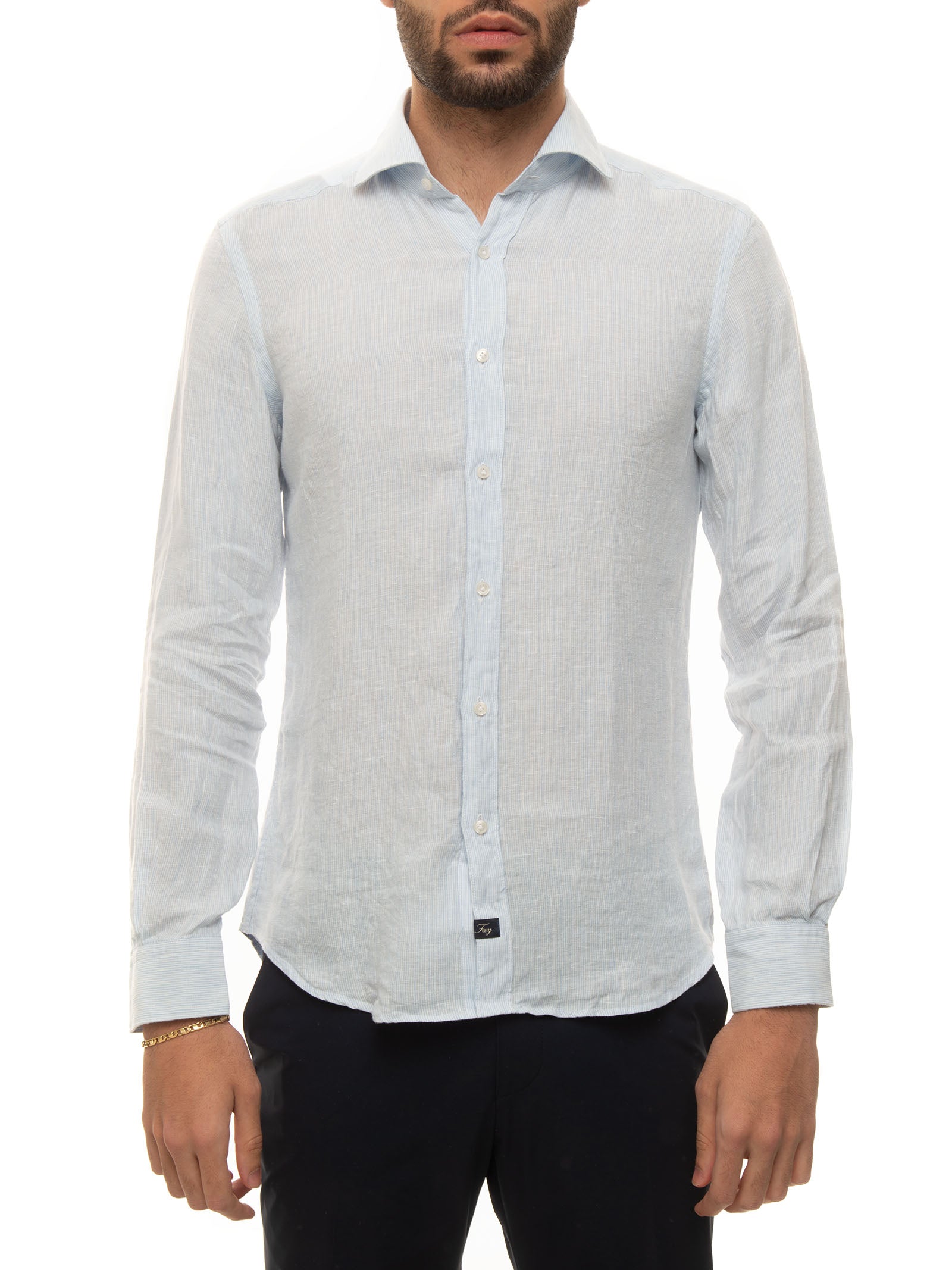 Casual shirt, french collar, striped pattern, front logo, back with two pleats, slim fit, composition: 100% linen, line: FAY.