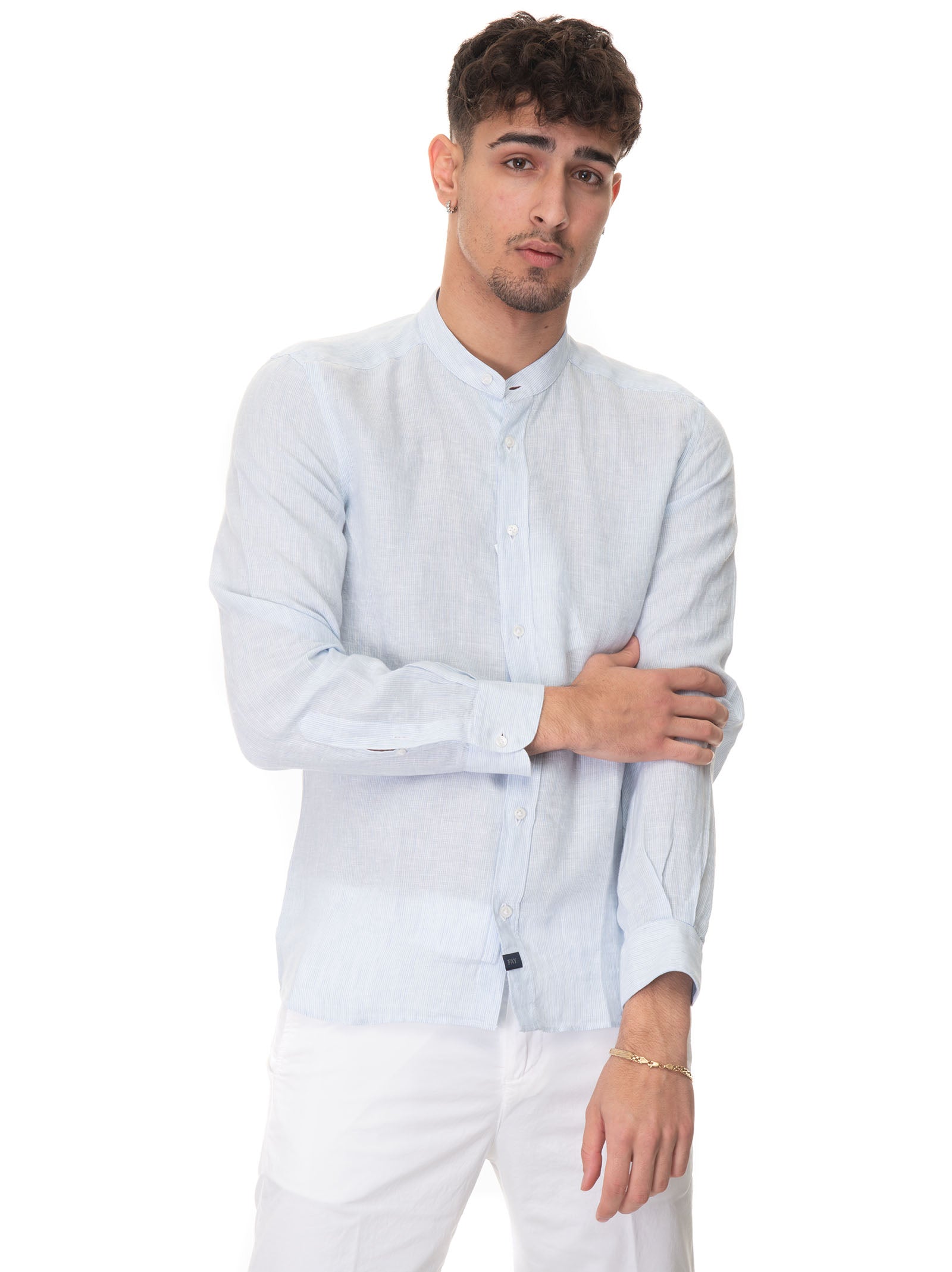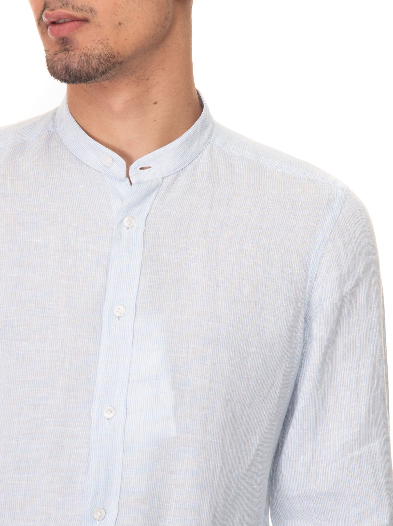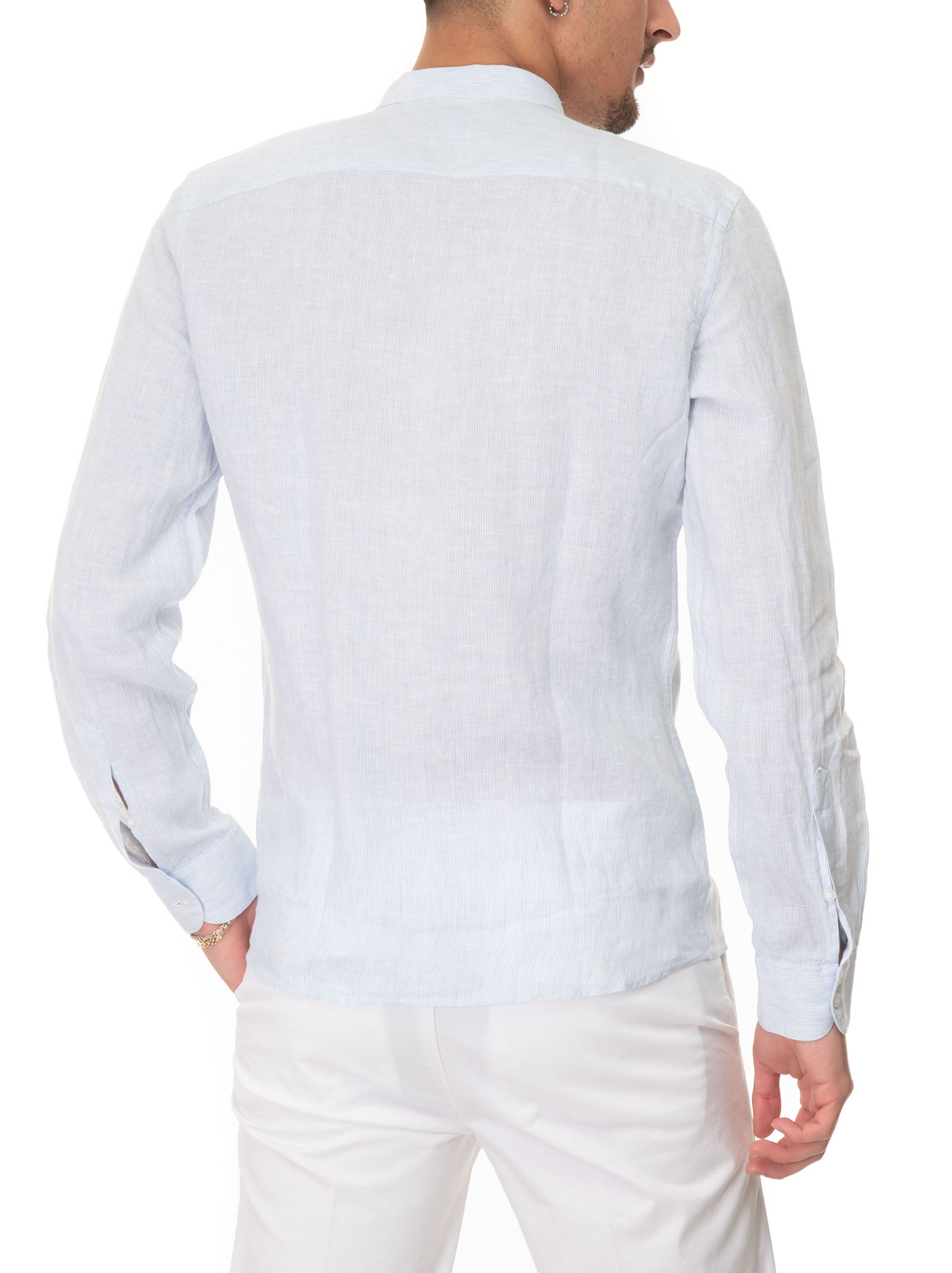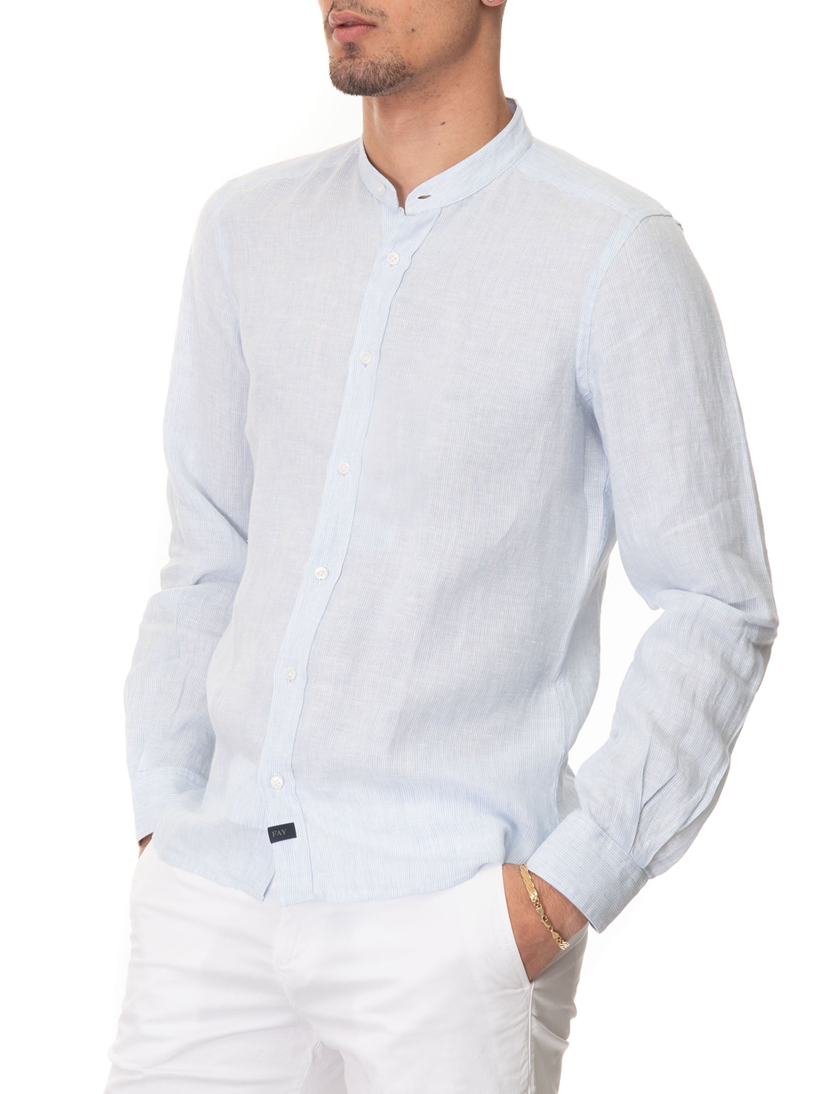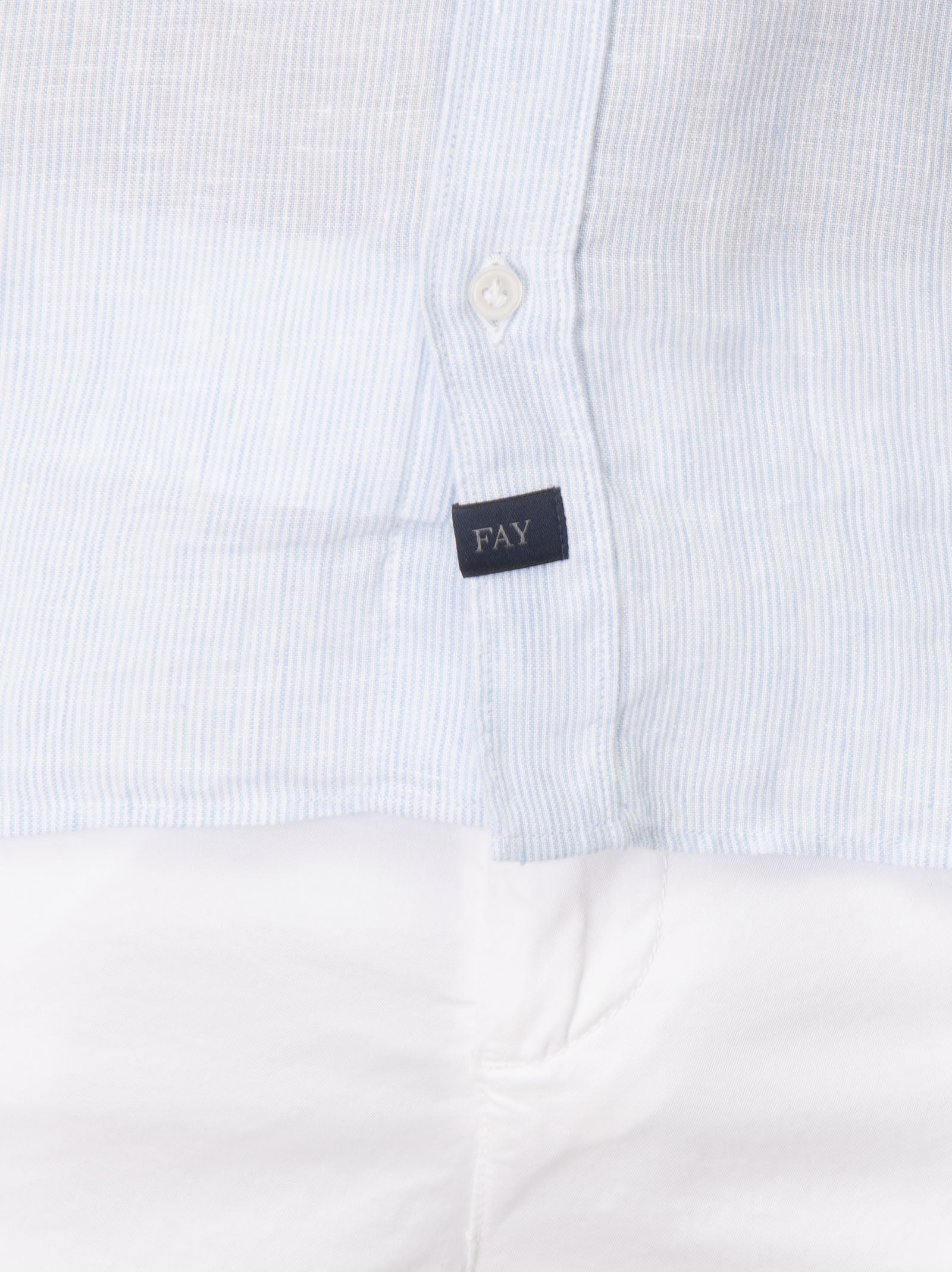 Guru linen shirt, washed effect, striped pattern, contrast stitched logo, slim fit, composition: 100% linen, line: FAY.