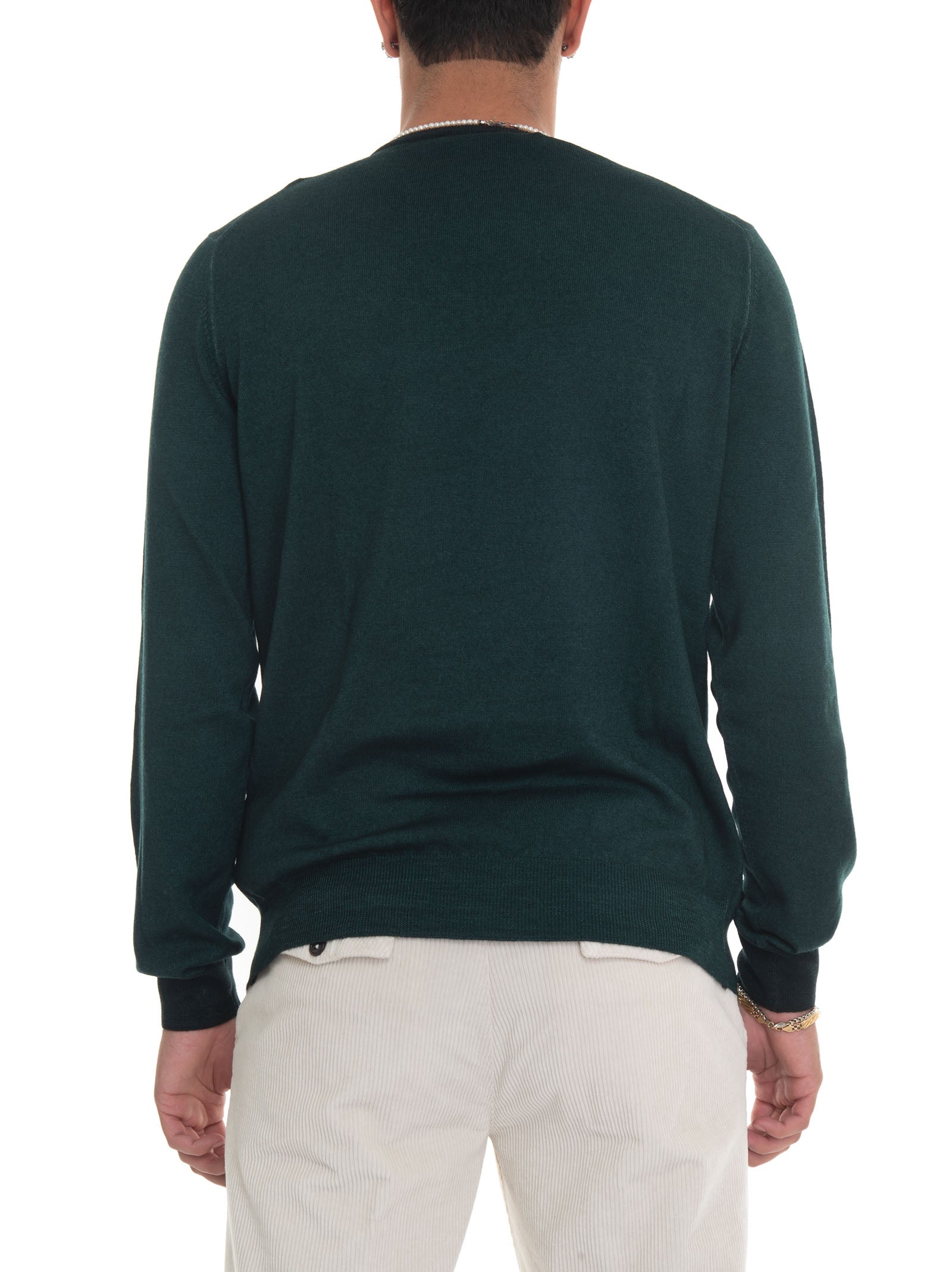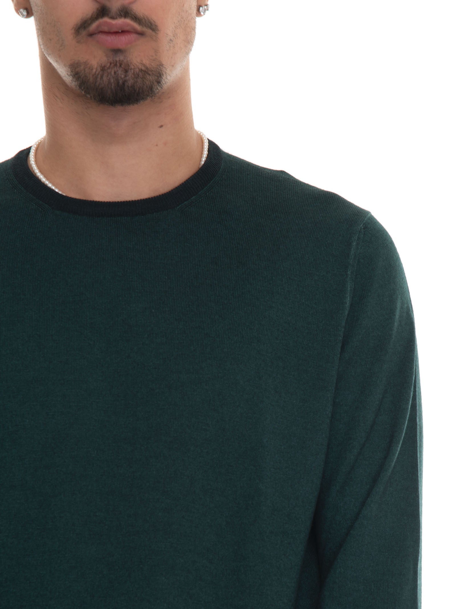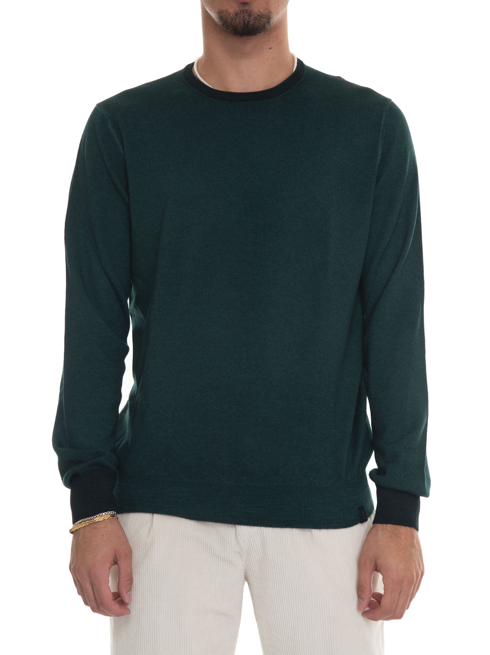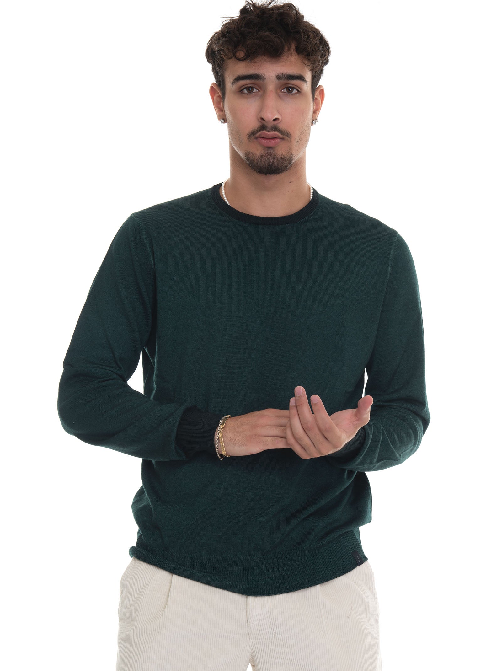 Crew neck sweater, stone washed, collar and cuffs in contrasting colour, tongue with logo, slim fit, composition: 100% wool, line: FAY.