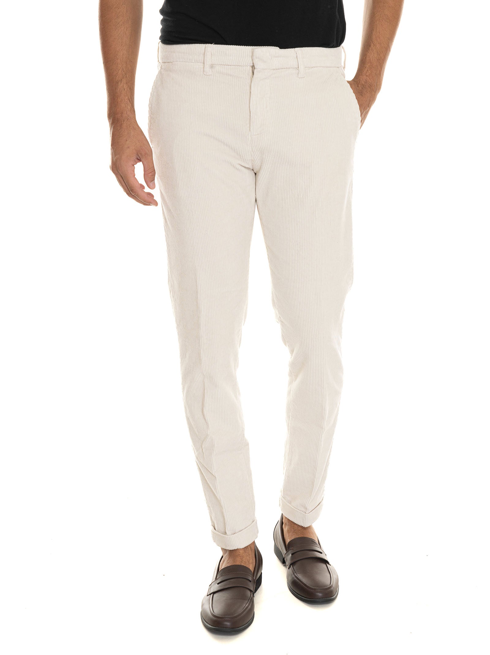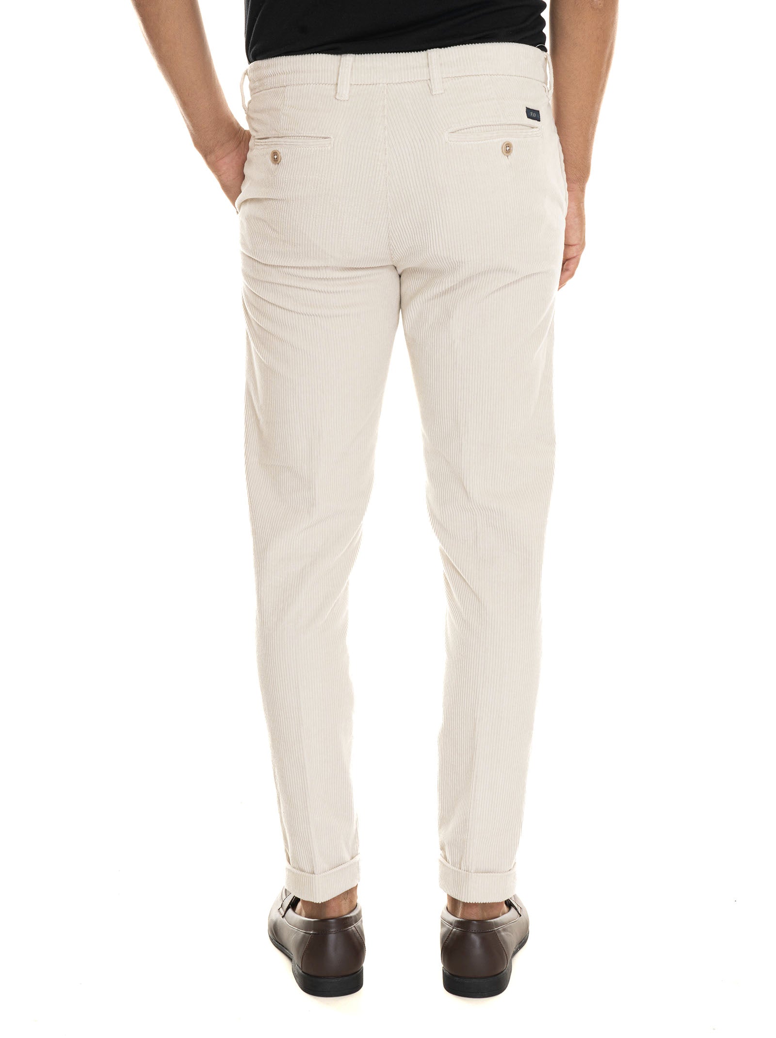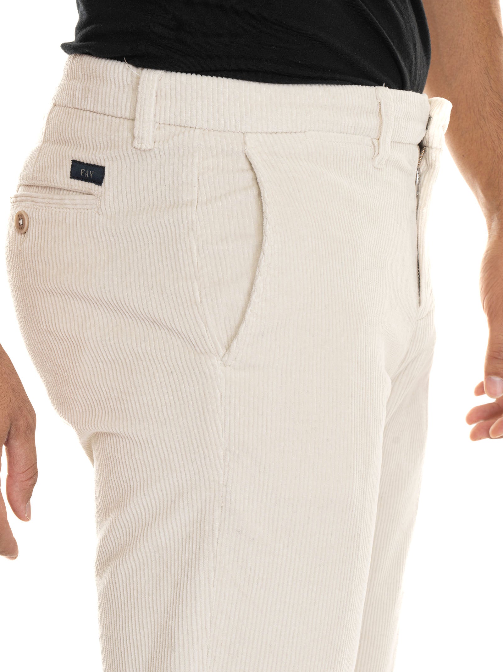 Chino trousers, wide velvet rib, button and concealed zip fastening, logo on the right pocket, rolled-up hem, 17 cm hem, composition: 97% cotton, 3% elastane, line: FAY.