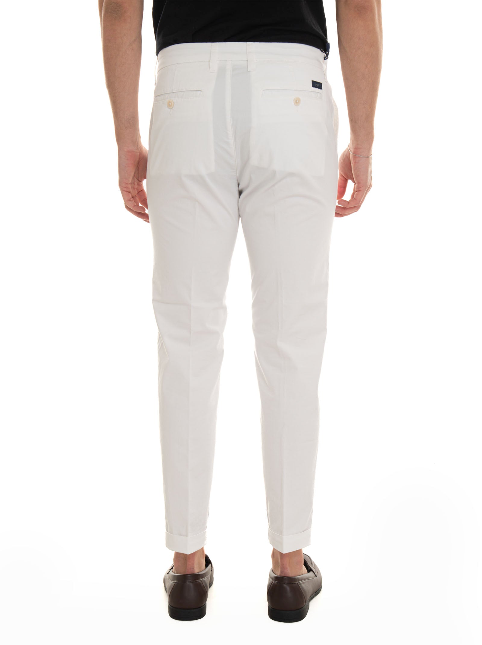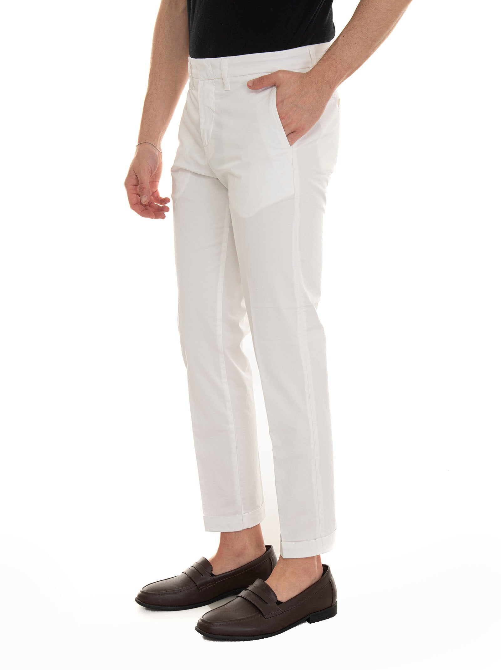 Chino style trousers, button and concealed zip closure, cuffed hem, right pocket logo, 16 cm hem, composition: 97% cotton, 3% elastane, line: FAY.