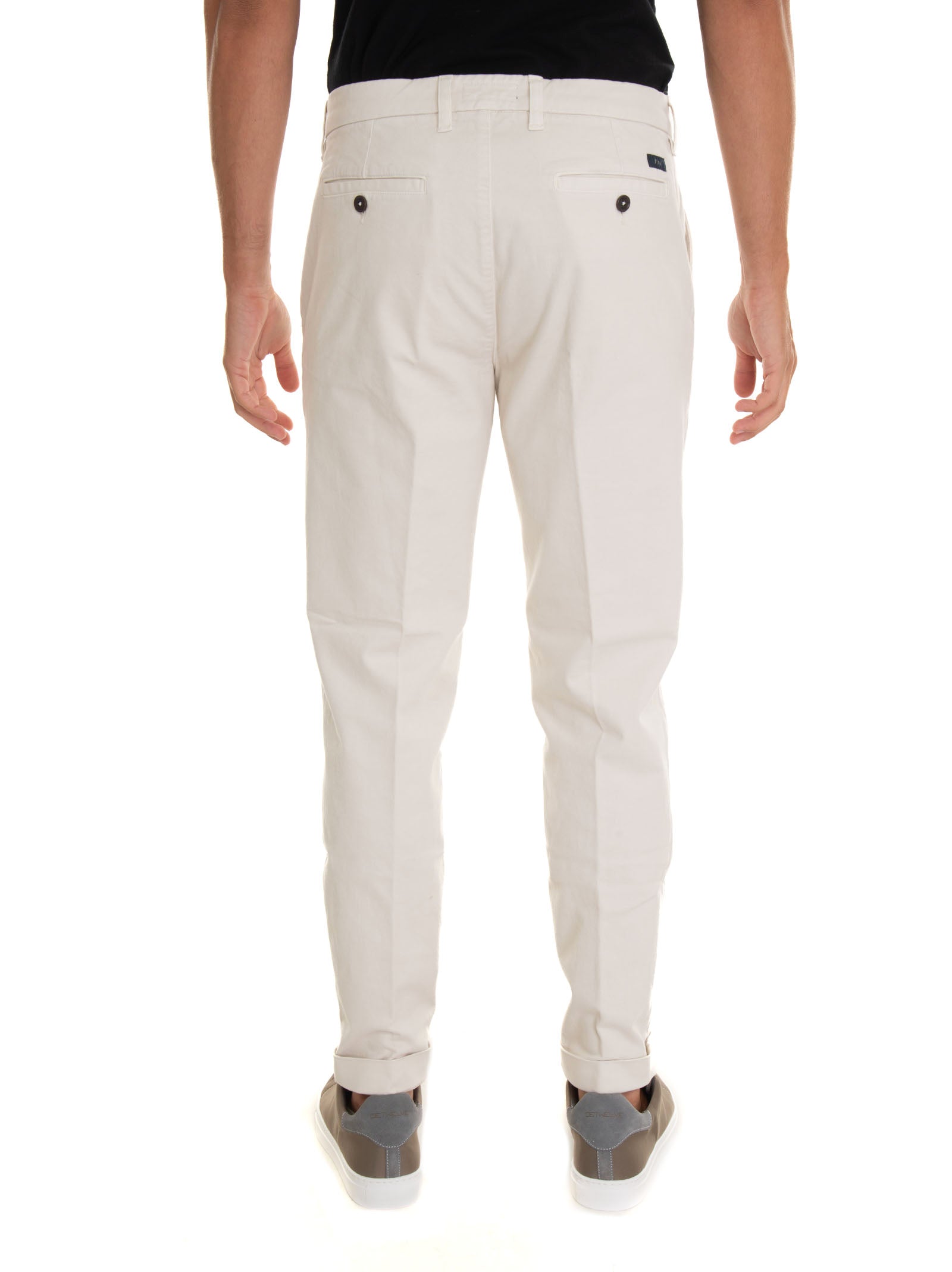 Chino style trousers, concealed hook and zip closure, right pocket logo, cuffed hem, 17 cm hem, slim fit, composition: 98% cotton, 2% elastane, line: FAY.