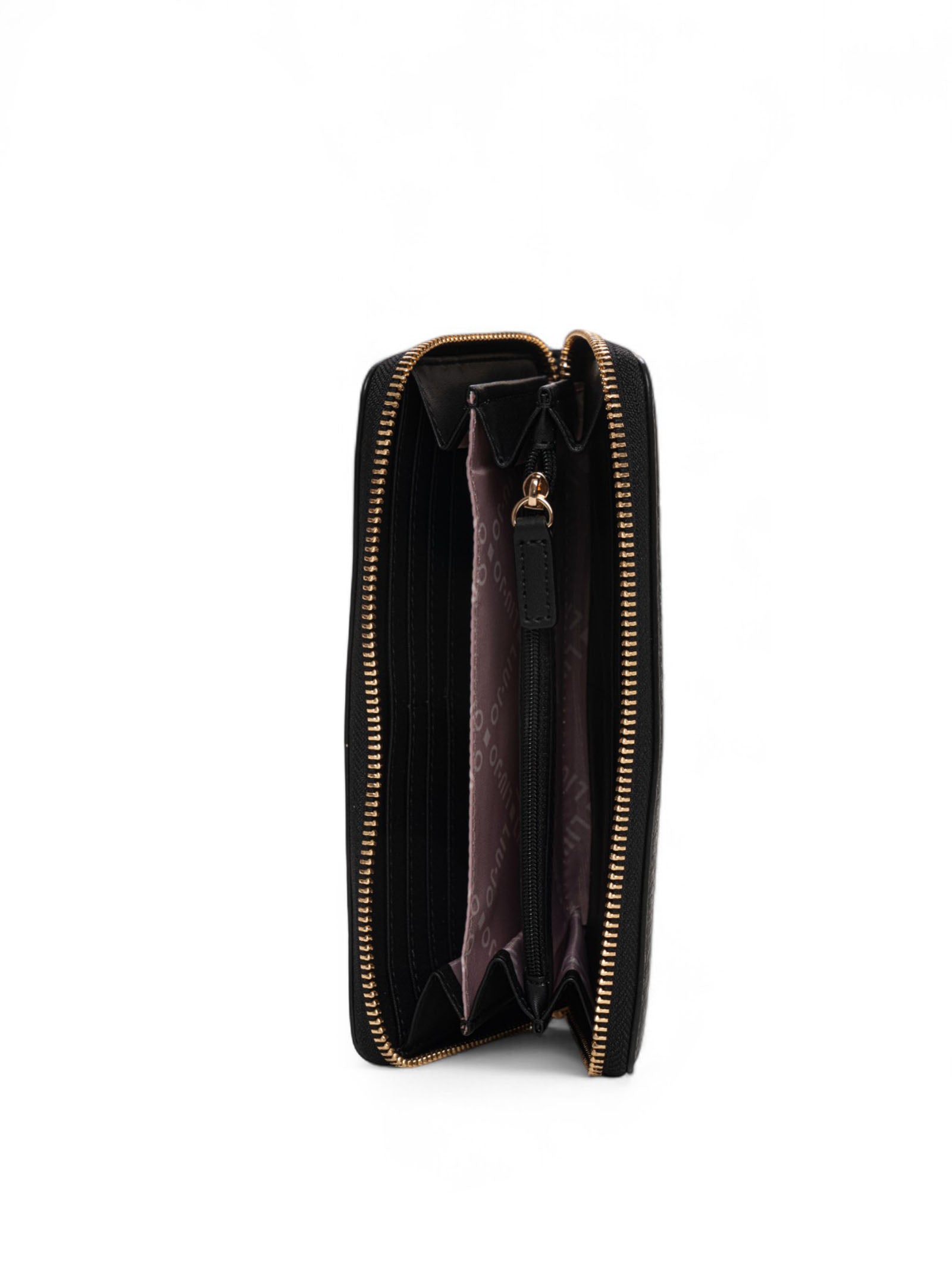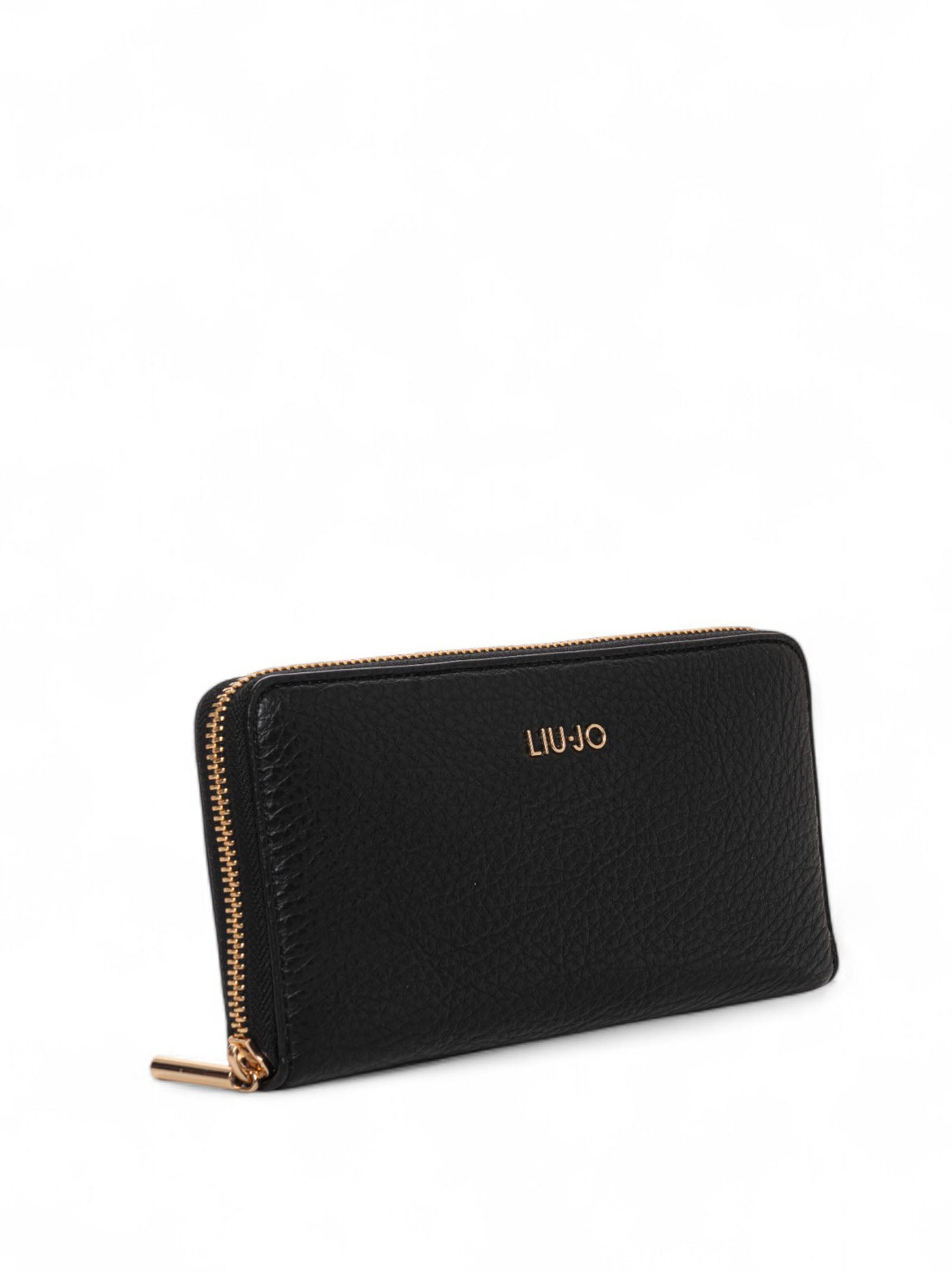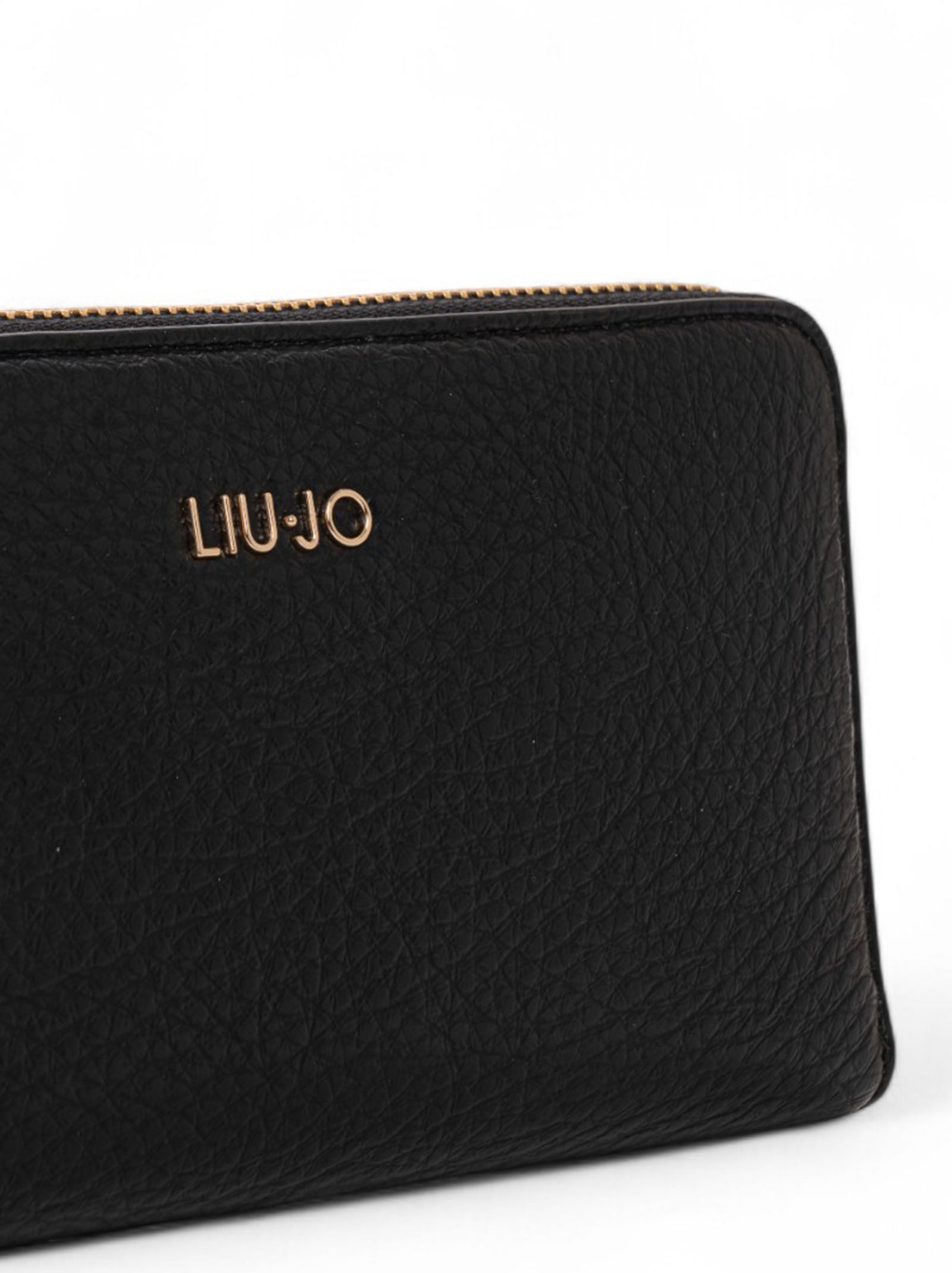 Zip around wallet, card slots, bill compartment, coin compartment, small front logo, composition: 100% polyurethane, line: LIU JO.