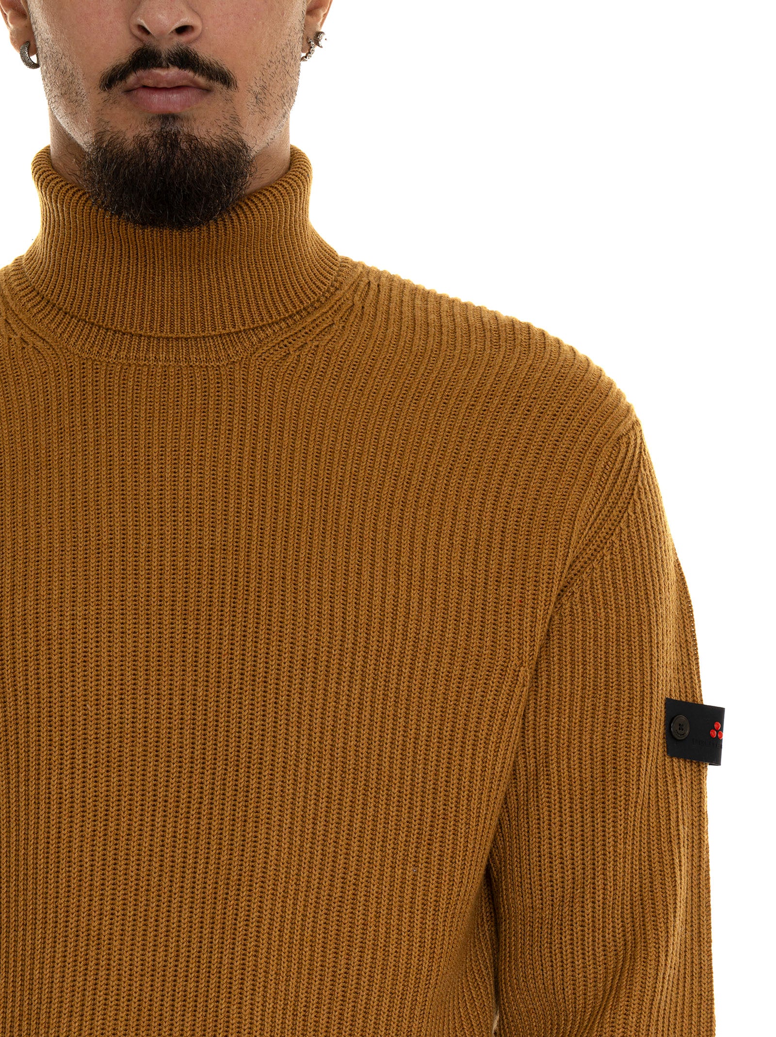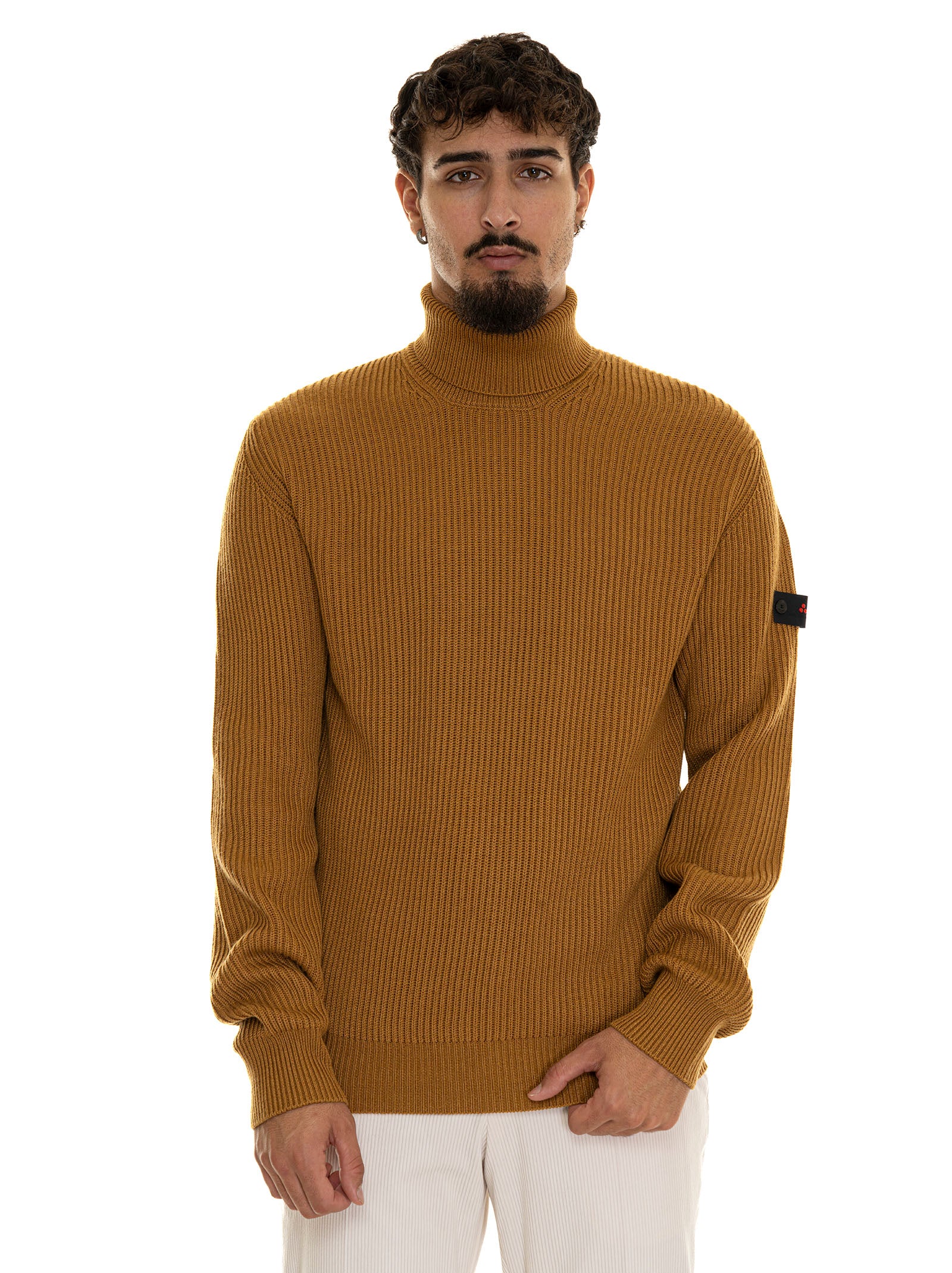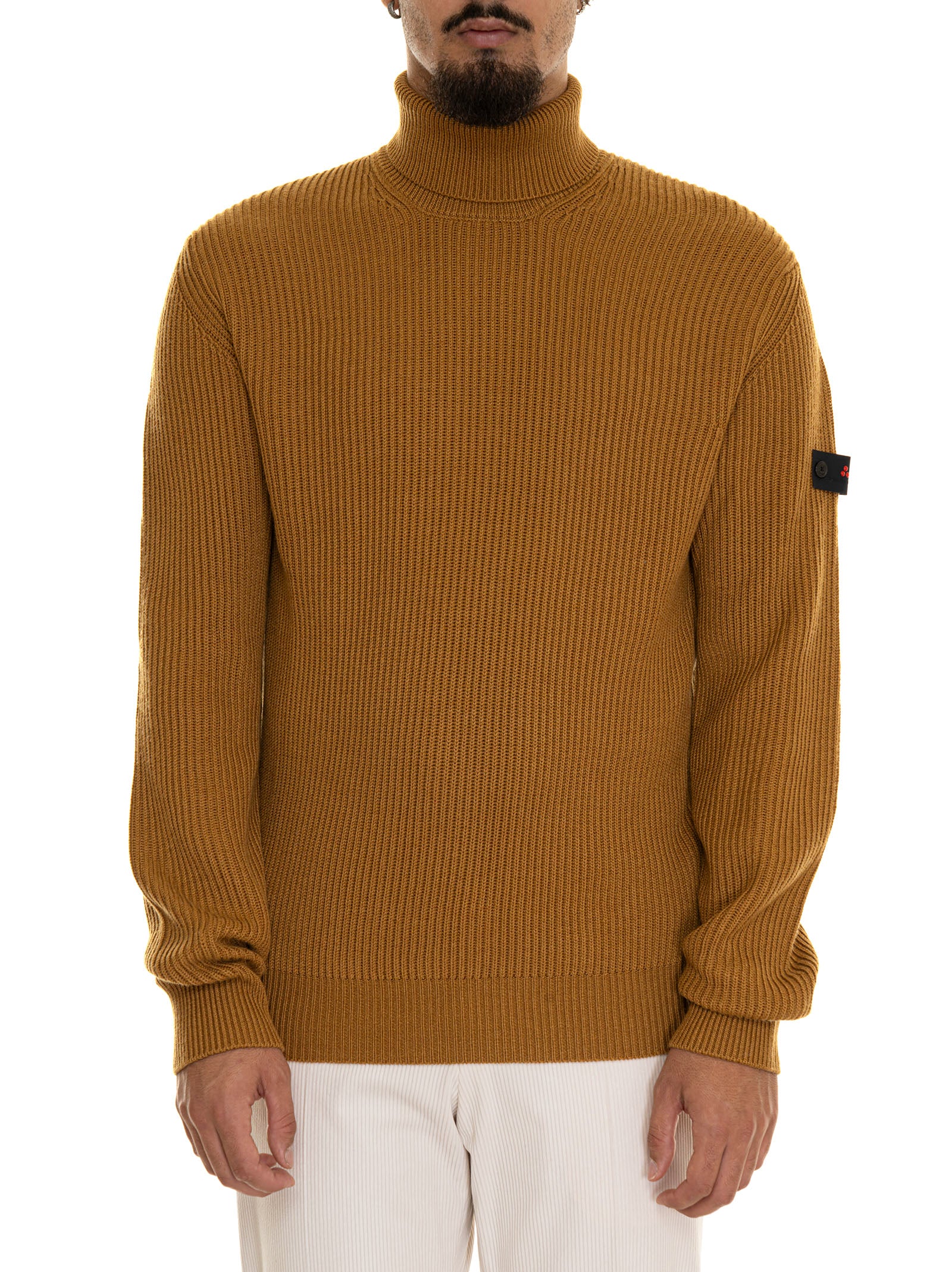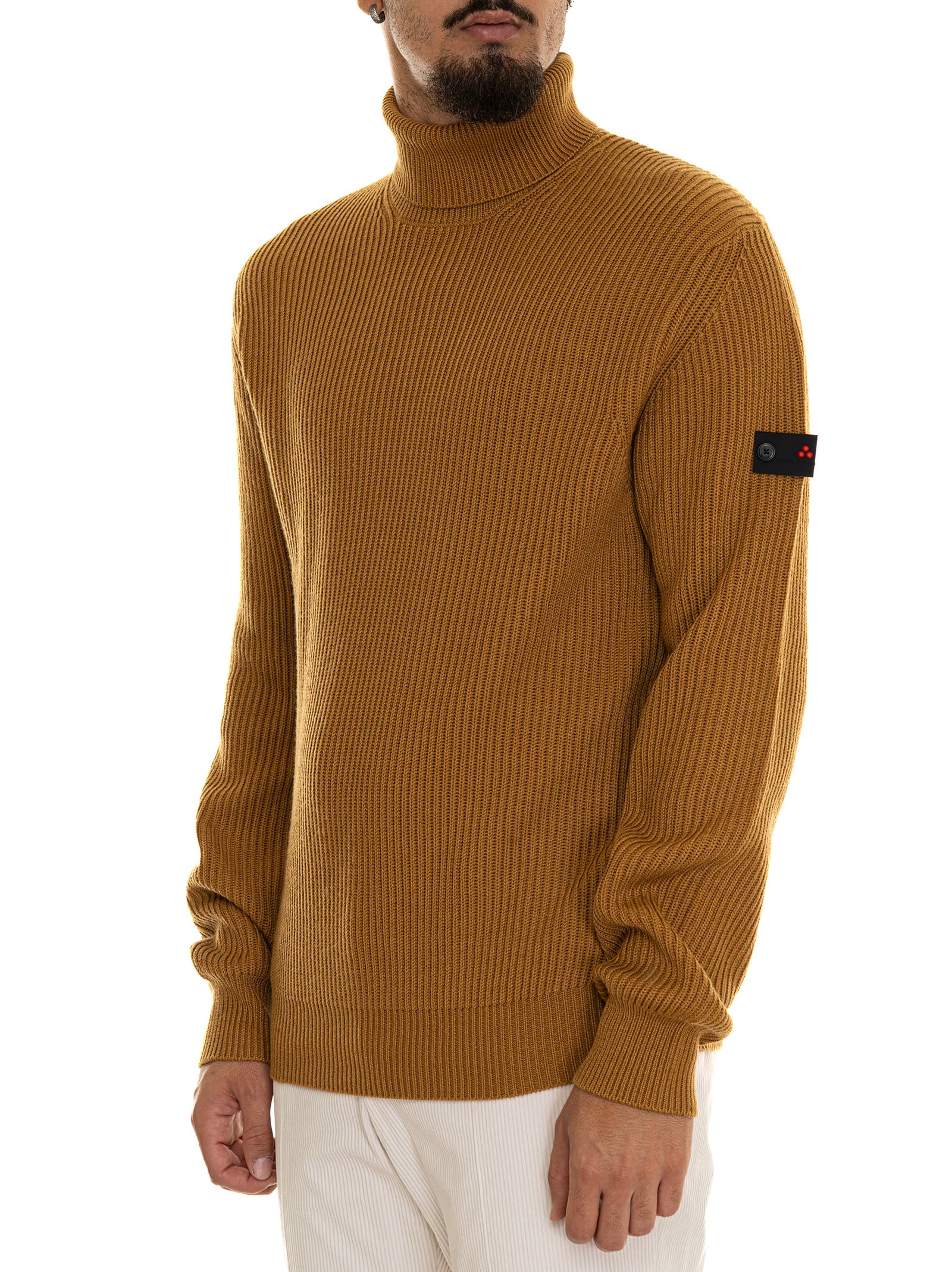 Peuterey EVROS01 turtleneck sweater, logo on the arm, ribbed fabric, solid color, composition: 54% polyester, 20% polyamide, 20% acrylic, 6% wool, line: PEUTEREY.