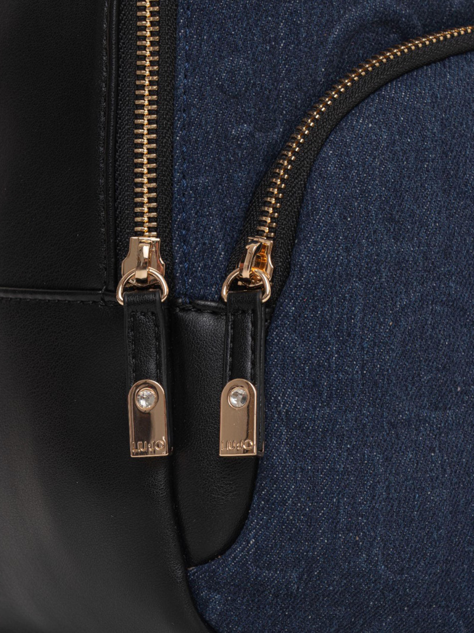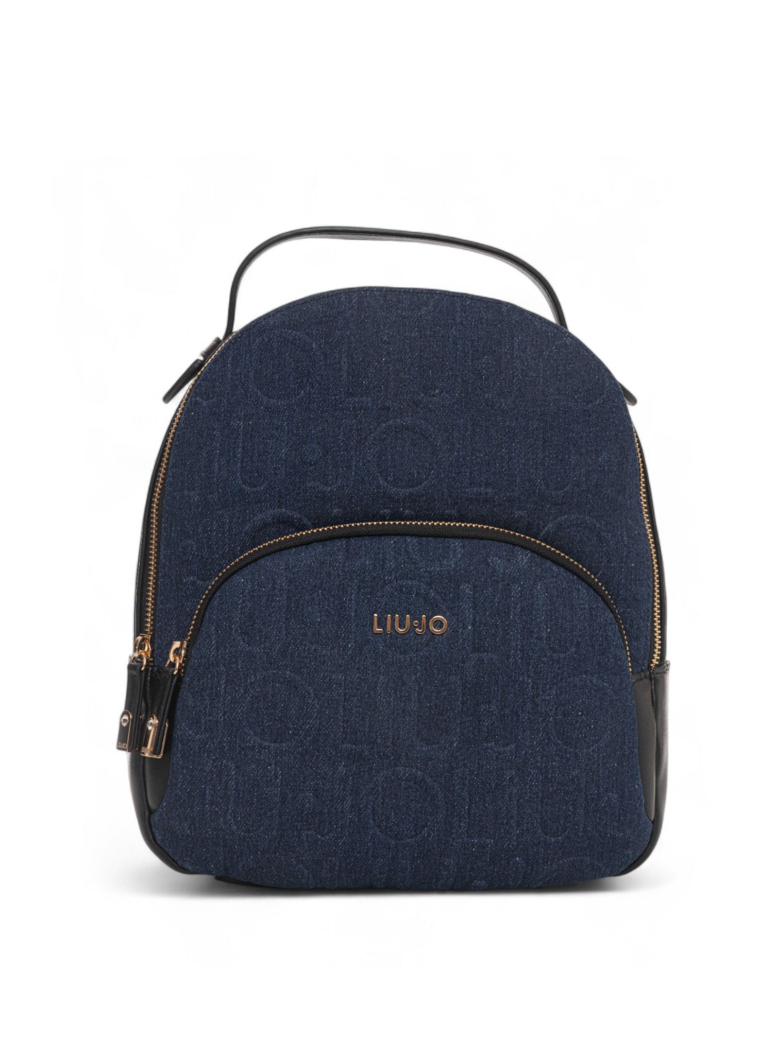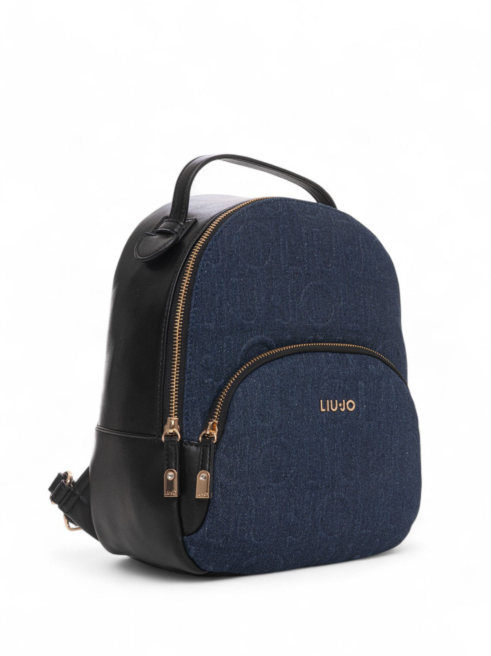 Backpack, zip closure, front pocket, adjustable shoulder straps, front logo, two-material, all-over logo, composition: leather, polyurethane, line: LIU JO.