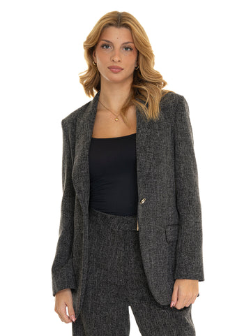 1-button jacket, tweed fabric, back slit, front pockets, composition: 74% polyester, 23% viscose, 3% elastane,...