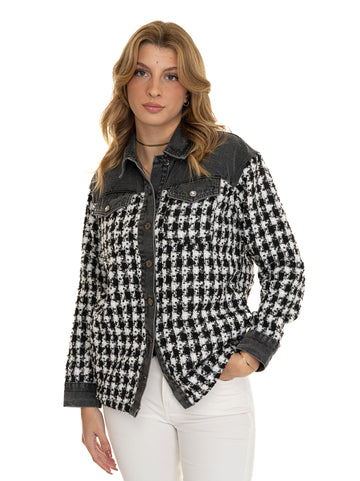 Shirt jacket, houndstooth pattern, denim details, logoed steel button closure, front patch pockets, logo tab,...