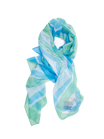 Scarf, patterned print, brushed fabric, composition: 100% polyester, line: LIU JO. Measurements: 120x120cm.