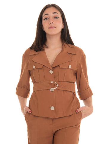Pinko Ghera 1-button jacket, flap pockets, elasticated waist, buttons on the cuffs, composition: 59% linen,...