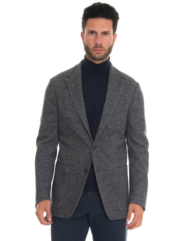 2 buttons jacket, patch pockets, herringbone pattern, model with 2 vents, jacket length 73cm (for...