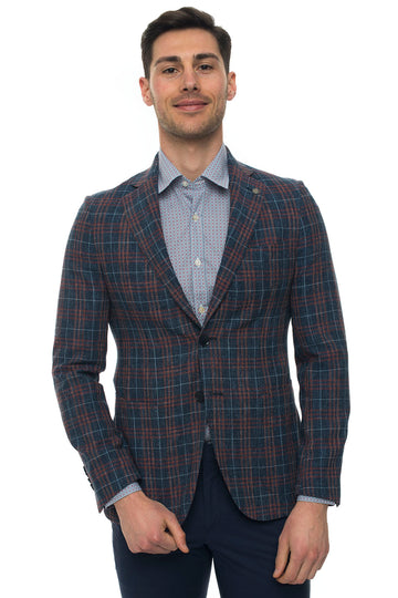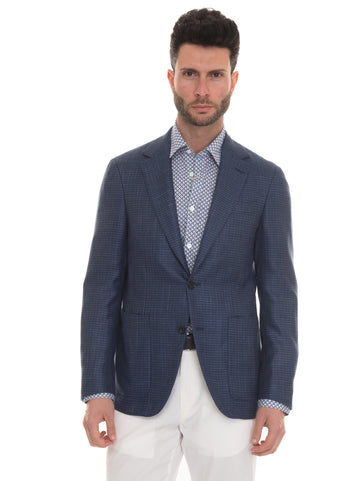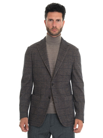 2-button jacket, small check pattern, unlined, drop 6r, patterned elbow patches, made in Italy, regular...