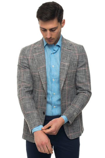 2-button jacket, semi-lined, patch pockets, Welsh pattern, side slits, made in Italy, slim fit, composition:...