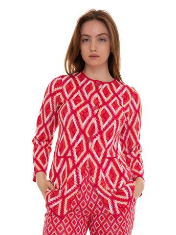 Long jacket with 3 buttons, patch pockets, geometric pattern, tricot workmanship, comfort fit, composition: 95%...