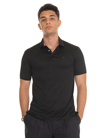 Jersey polo shirt, short sleeves, half zip, eagle logo, side slits, solid color, lightweight fabric,...