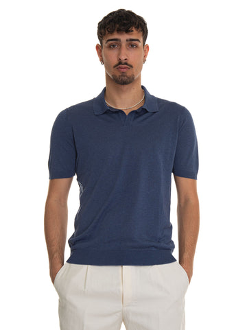 Knitted polo shirt, side vents, slub effect, ultra-light fabric, composition: 100% linen, line: GRAN SASSO.