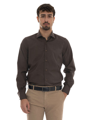 Camicia classica da uomo, collo mezzo francese, tinta unita, composizione: 100% lana merino, linea: VINCENZO...