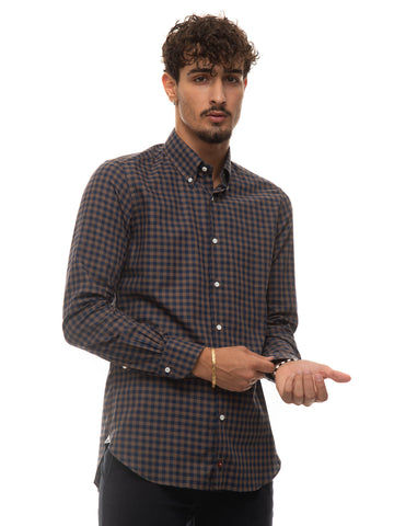 Casual shirt, button-down collar, checked pattern, back with two pleats, composition: 100% cotton, line: FAY.