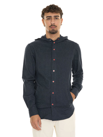 Hooded shirt, snap buttons, herringbone pattern, composition: 100% cotton, line: KITON.