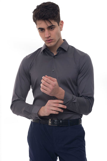 Classic men's shirt, classic Italian collar, back with two pleats, stretch fabric, solid colour, composition:...