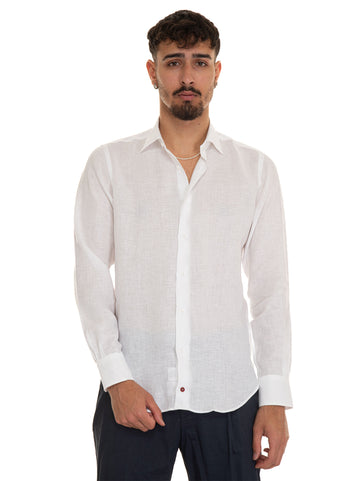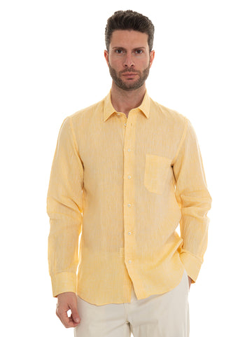 Long-sleeved linen shirt, soft collar, left side pocket, composition: 100% linen, line: VINCENZO DE LAUZIERS.