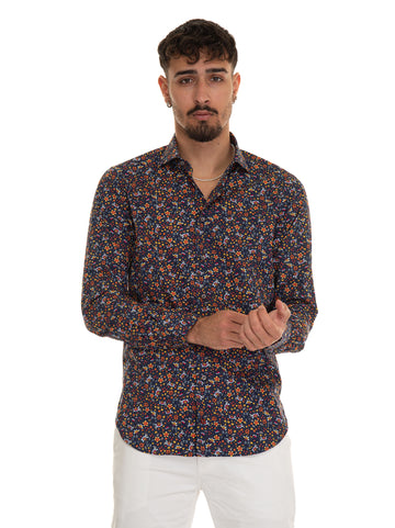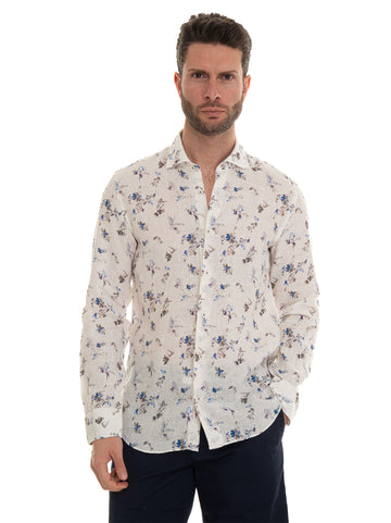 Linen shirt, floral pattern, long sleeves, composition: 100% linen, line: VINCENZO DE LAUZIERS.