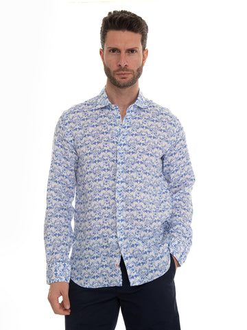 Linen shirt, cashmere pattern, long sleeves, composition: 100% linen, line: VINCENZO DE LAUZIERS.