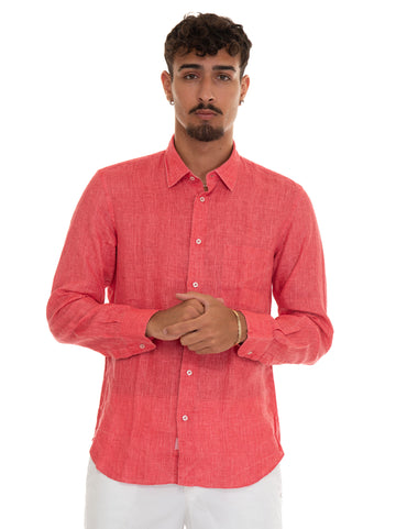 Long-sleeved linen shirt, classic Italian collar, solid color, back with two pleats, composition: 100% linen,...