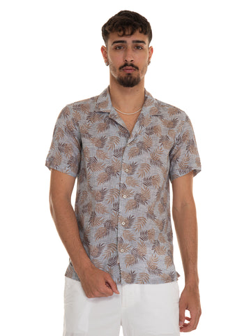 Short-sleeved linen shirt, floral pattern, bowling collar, logo sewn on the bottom, composition: 100% linen,...