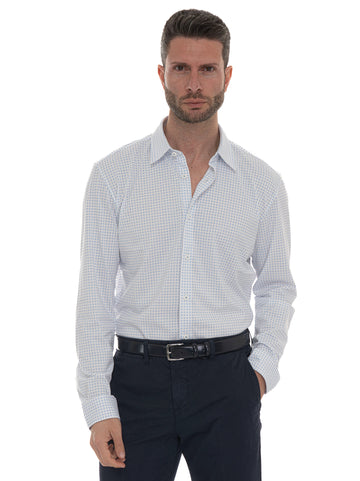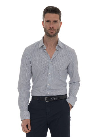 BOSS H-HANK-KENT-C1 casual shirt, classic Italian collar, geometric pattern, back with two pleats, composition: 96%...