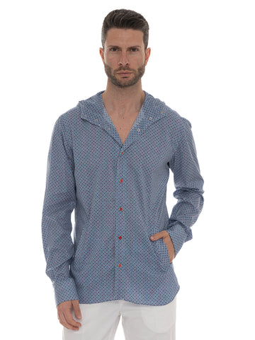 Hooded shirt, logo button fastening, tie pattern, composition: 100% cotton, line: KITON.