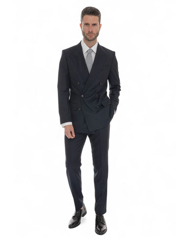 BOSS DB-SUIT double-breasted suit, textured fabric, peak lapels, jacket length 75cm (for size 50), classic...