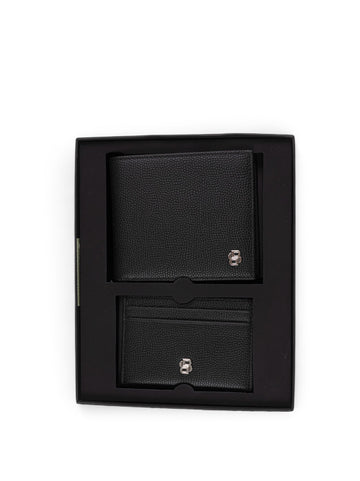 BOSS GB-OUTLINEB-4CC&CARD wallet and card holder set, hammered leather, chrome-plated steel logo, coin compartment, banknote...