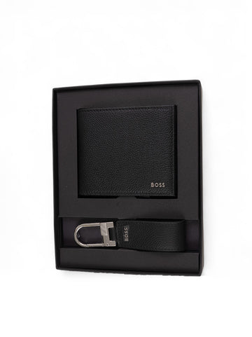 BOSS GBBM-4CC&KEYRING card holder and key ring set, hammered leather, chrome-plated steel logo, banknote compartment,...