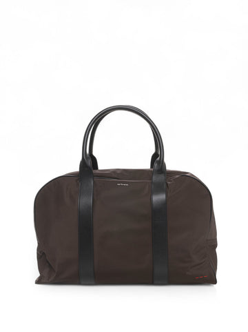 Travel bag, double leather handle, removable leather shoulder strap, chromed steel logo, contrasting stitching, zip...