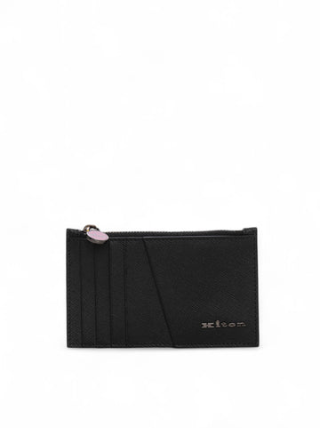 Credit card holder, chromed steel logo, external zip, saffiano leather, composition: 100% leather, line: KITON.