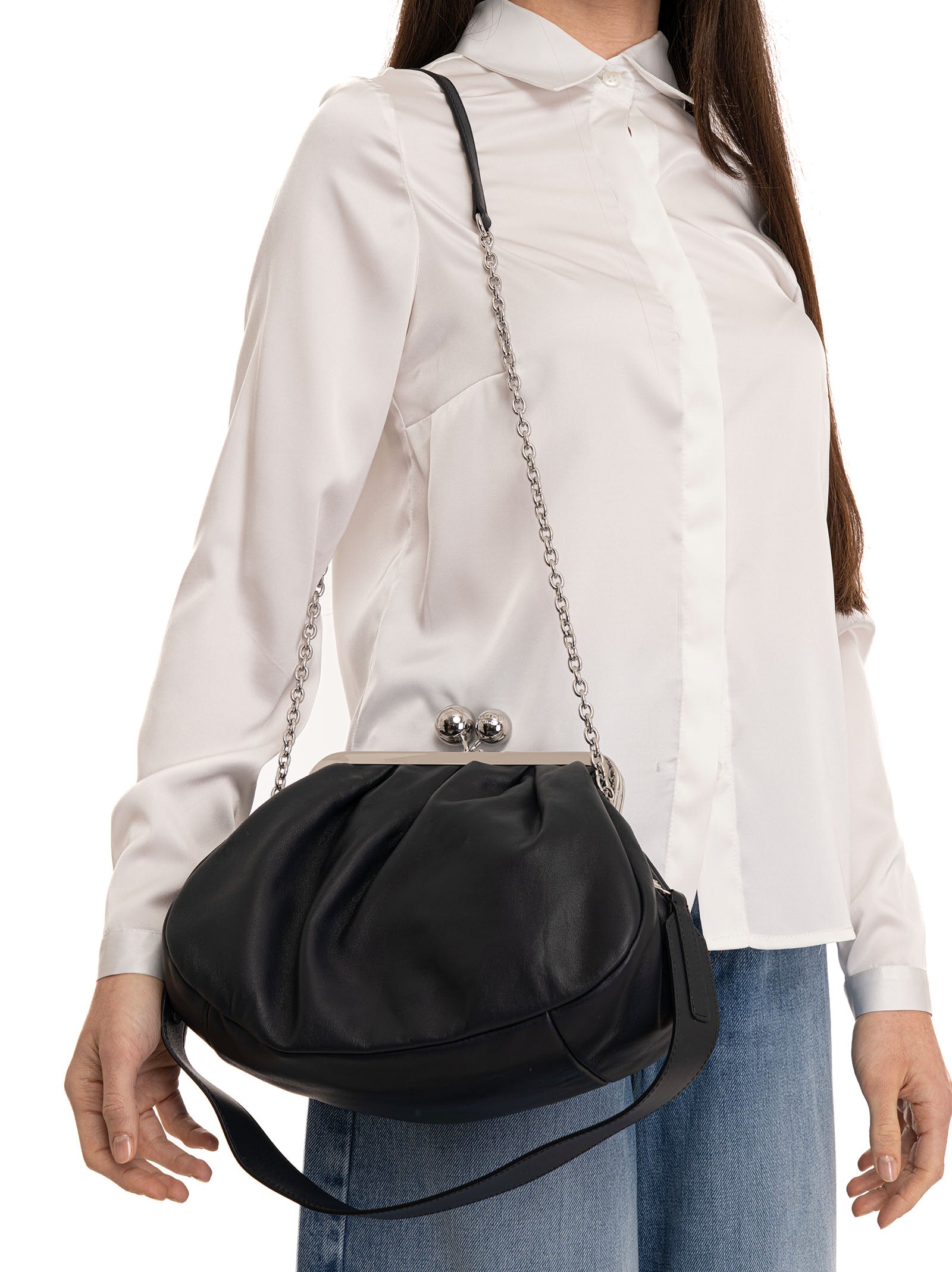 Borsa in pelle, chiusura a scatto, tracolla a catena con inserto in pelle, tracolla in pelle removibile, fodera interna a righe, tasca interna, composizione: 100% pelle, linea: WEEKEND MAX MARA.