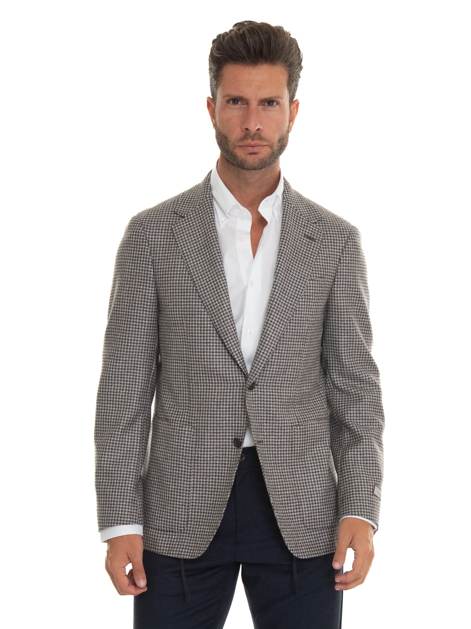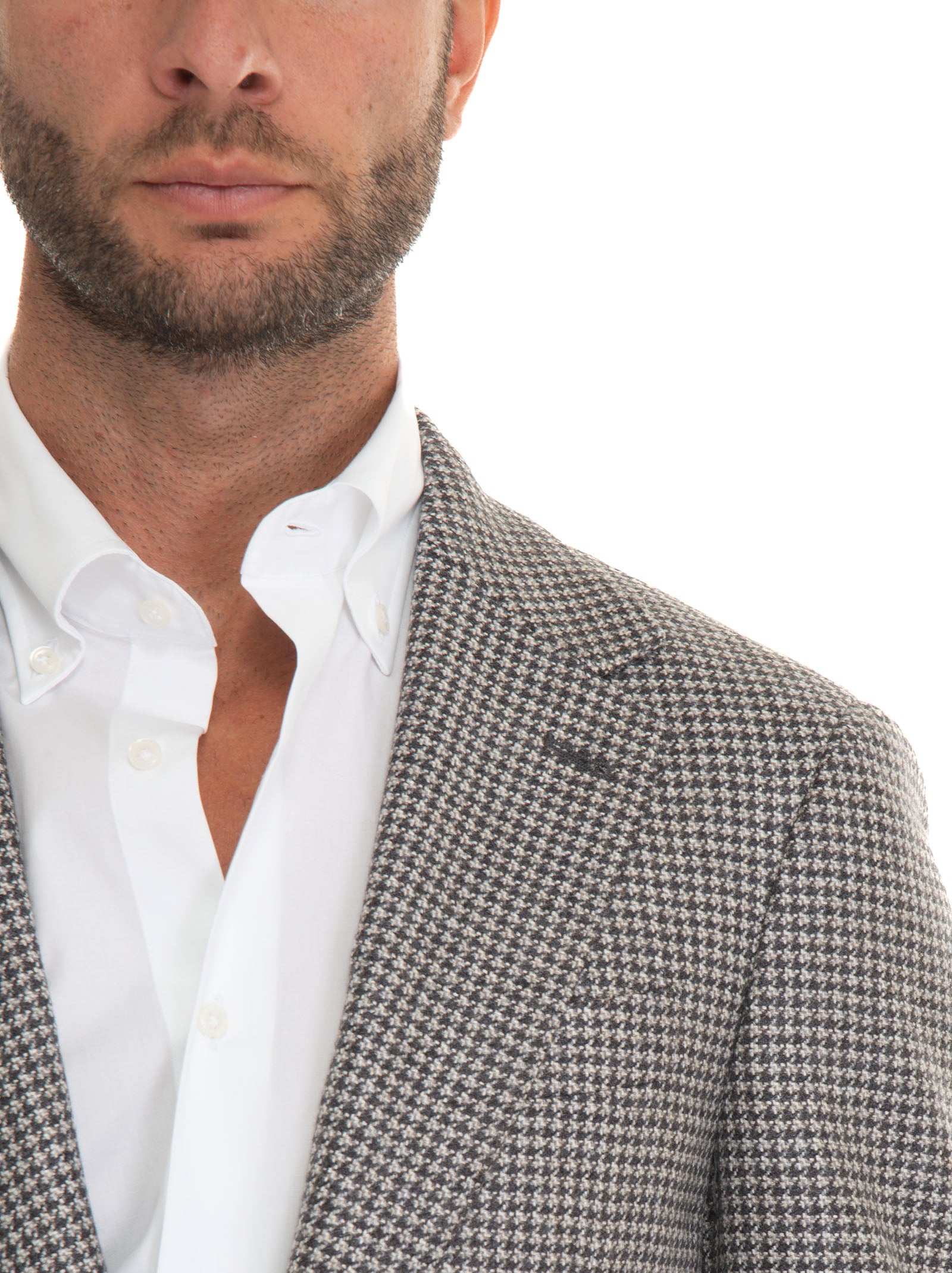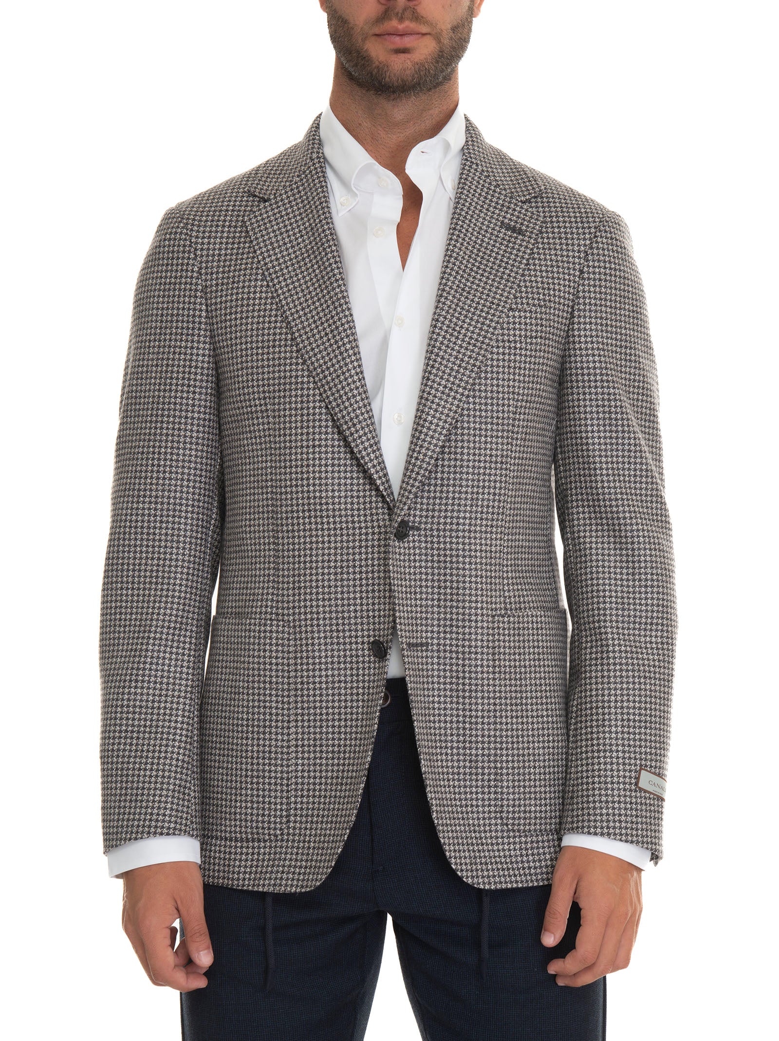2-button jacket, houndstooth pattern, 6r drop, patch pockets, jacket length 74cm (for size 50), regular fit, composition: 98% wool, 2% linen, inside: 100% silk, line: CANALI.