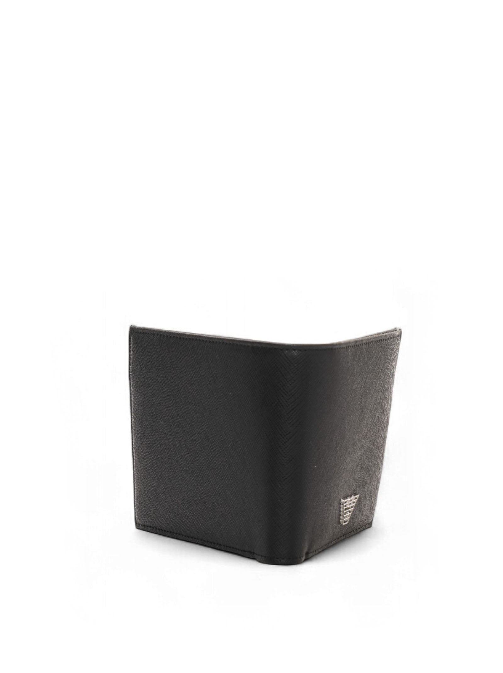 Portafoglio, scomparti portacarte, scomparto banconote, scomparto banconote, logo in metallo, pelle saffiano, composizione: 53% poliammide, 47% poliestere, linea: EMPORIO ARMANI.