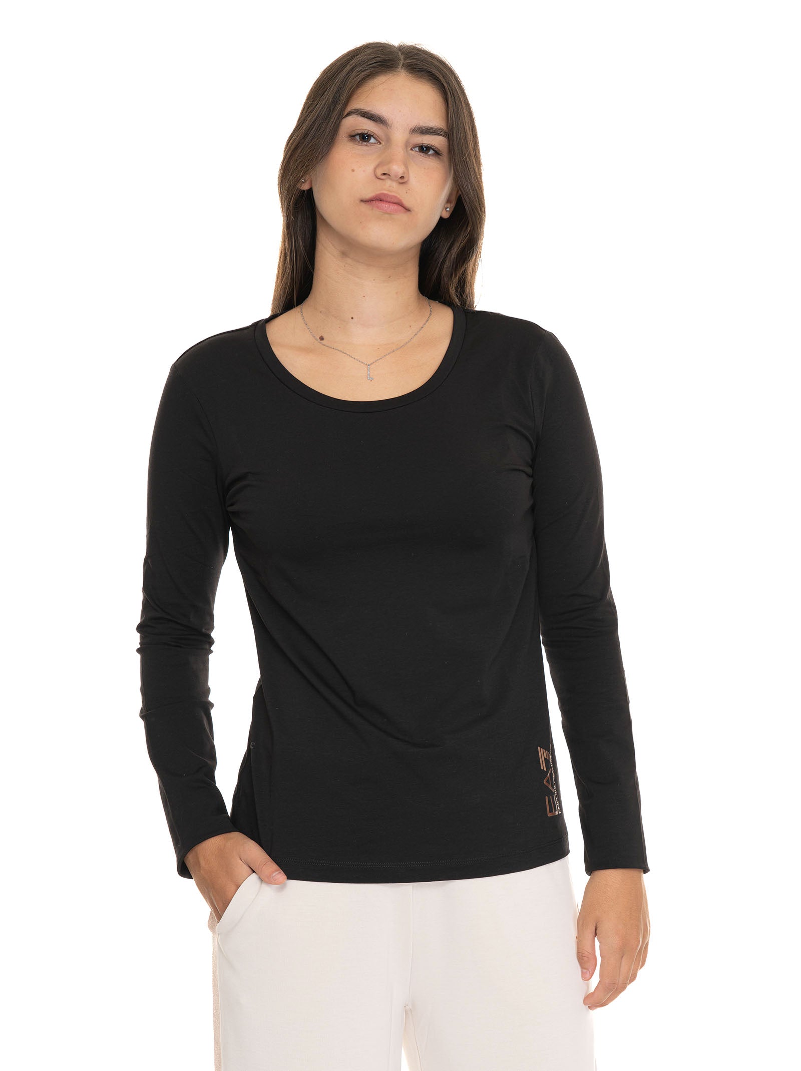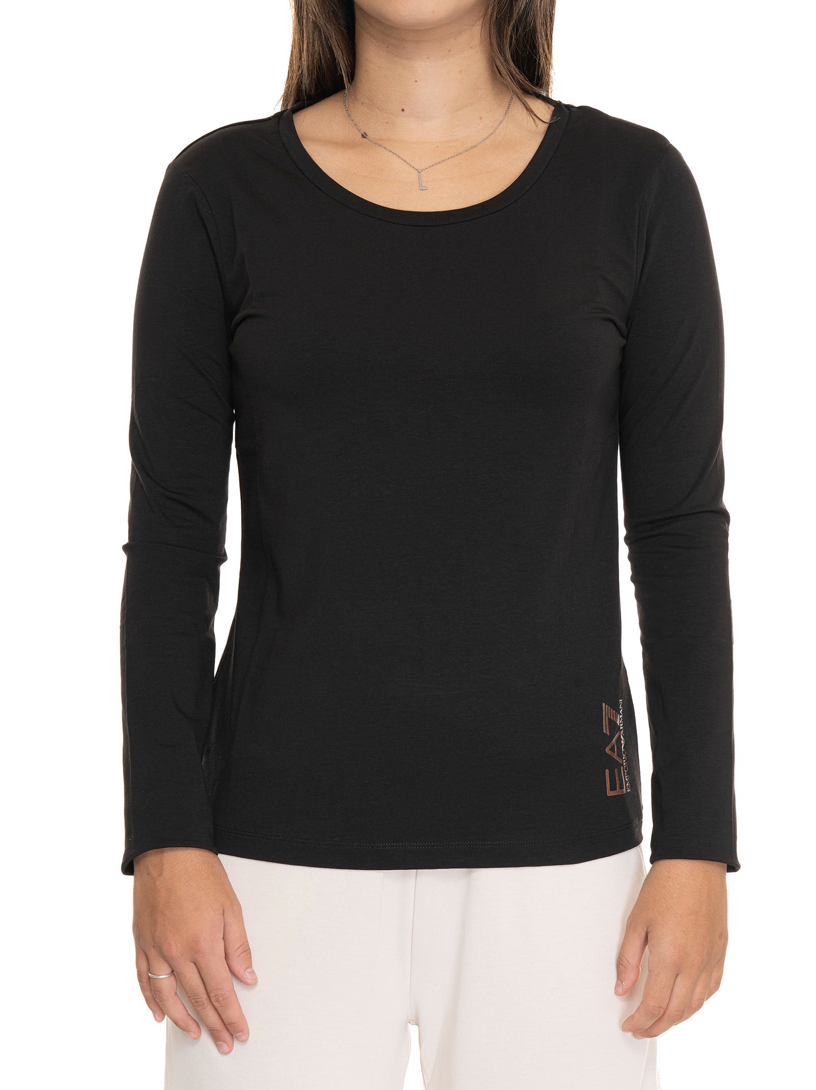 T-shirt, long sleeve, crew neck, side logo, stretch fabric, composition: 95% cotton, 5% elastane, line: EA7.