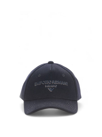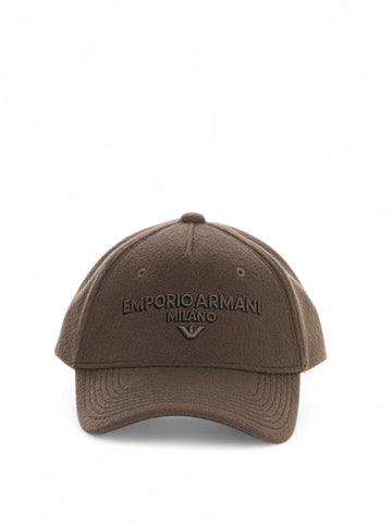 Adjustable visor hat, flannel fabric, logo printed on the front, composition: 100% wool, line: EMPORIO...