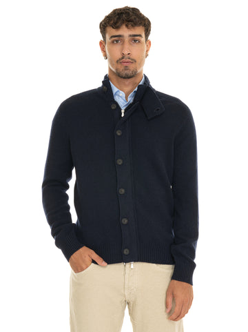 Buttoned cardigan, solid color, slim fit, composition: 100% merino wool, line: HINDUSTRIE.