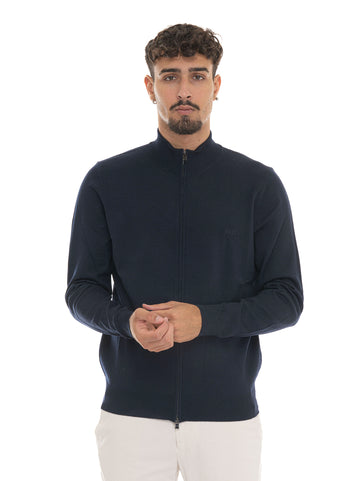 Wool cardigan, zip closure, small front logo, composition: 100% wool, line: BOSS.