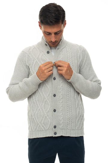 Cardigan with braids, button closure, ribbed collar, cuffs and bottom, made in Italy, fitted fit,...