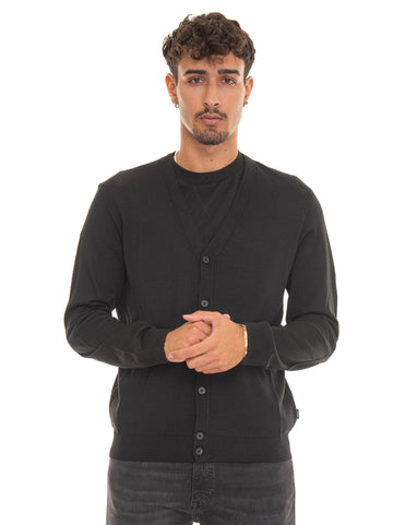 BOSS AVAC-CD- button cardigan, V-neck, logo tab, composition: 60% wool, 40% acrylic, line: BOSS.