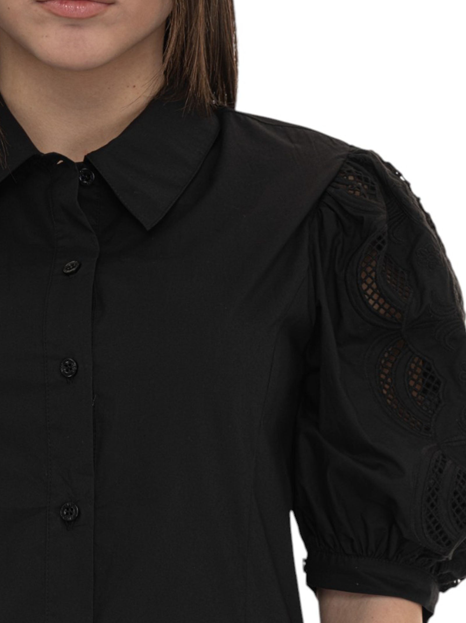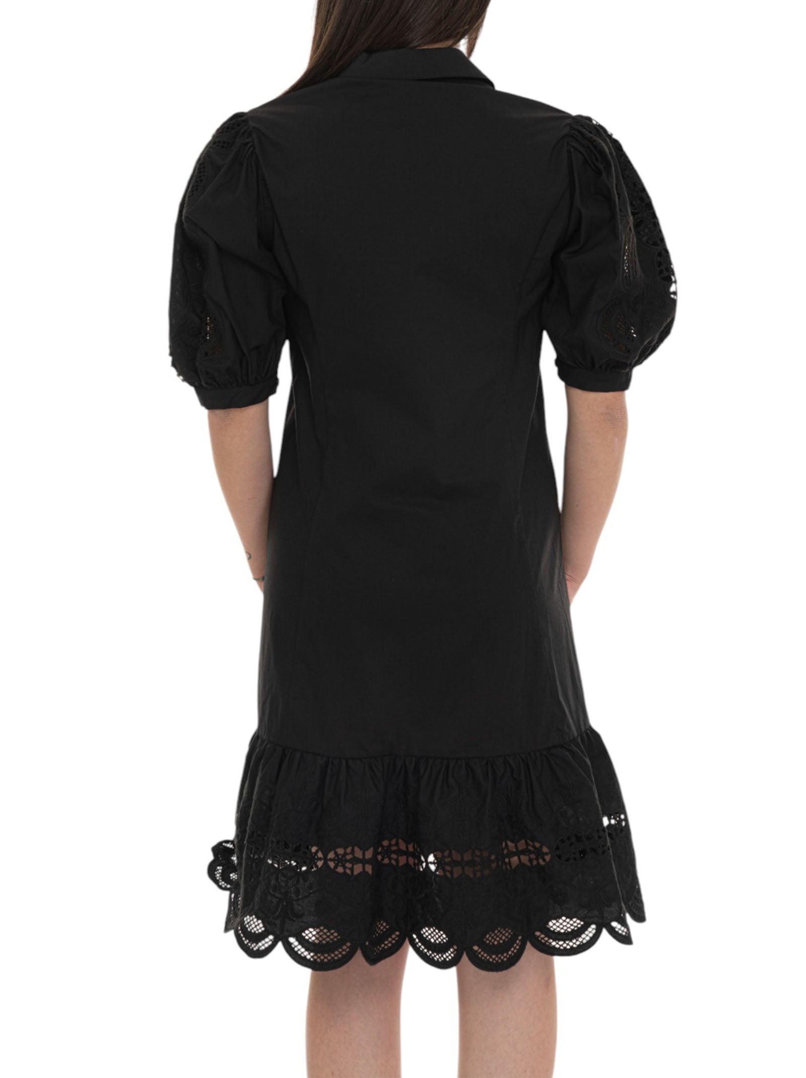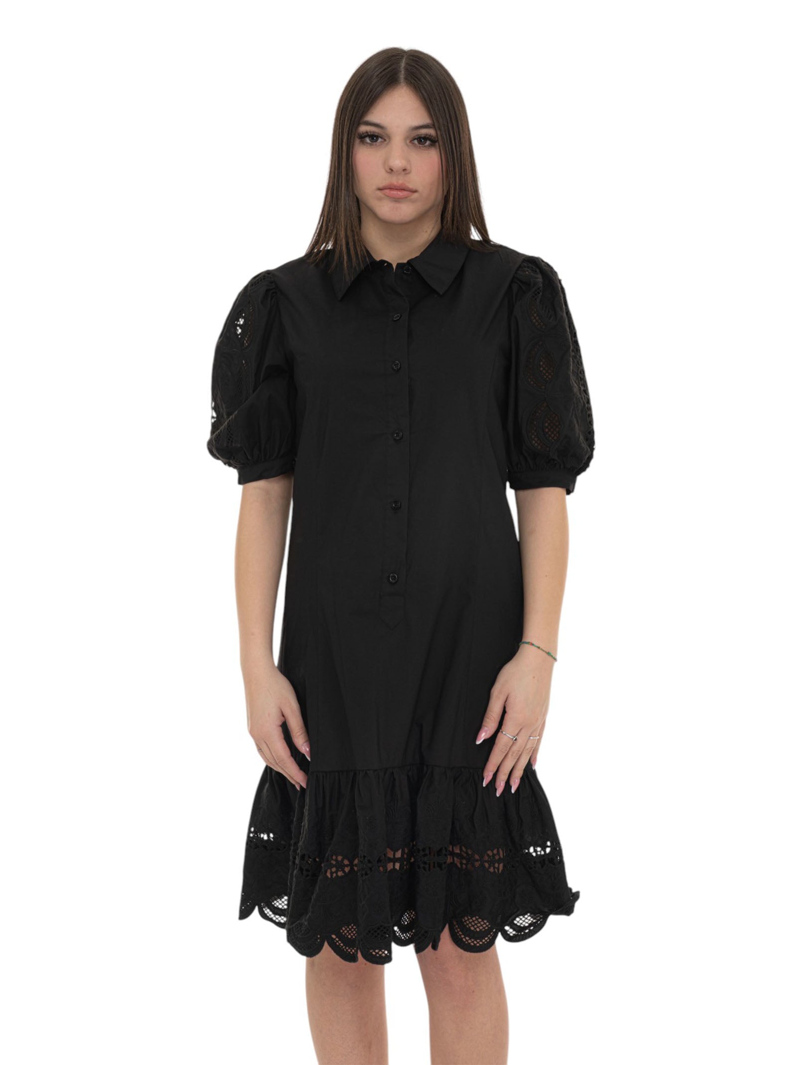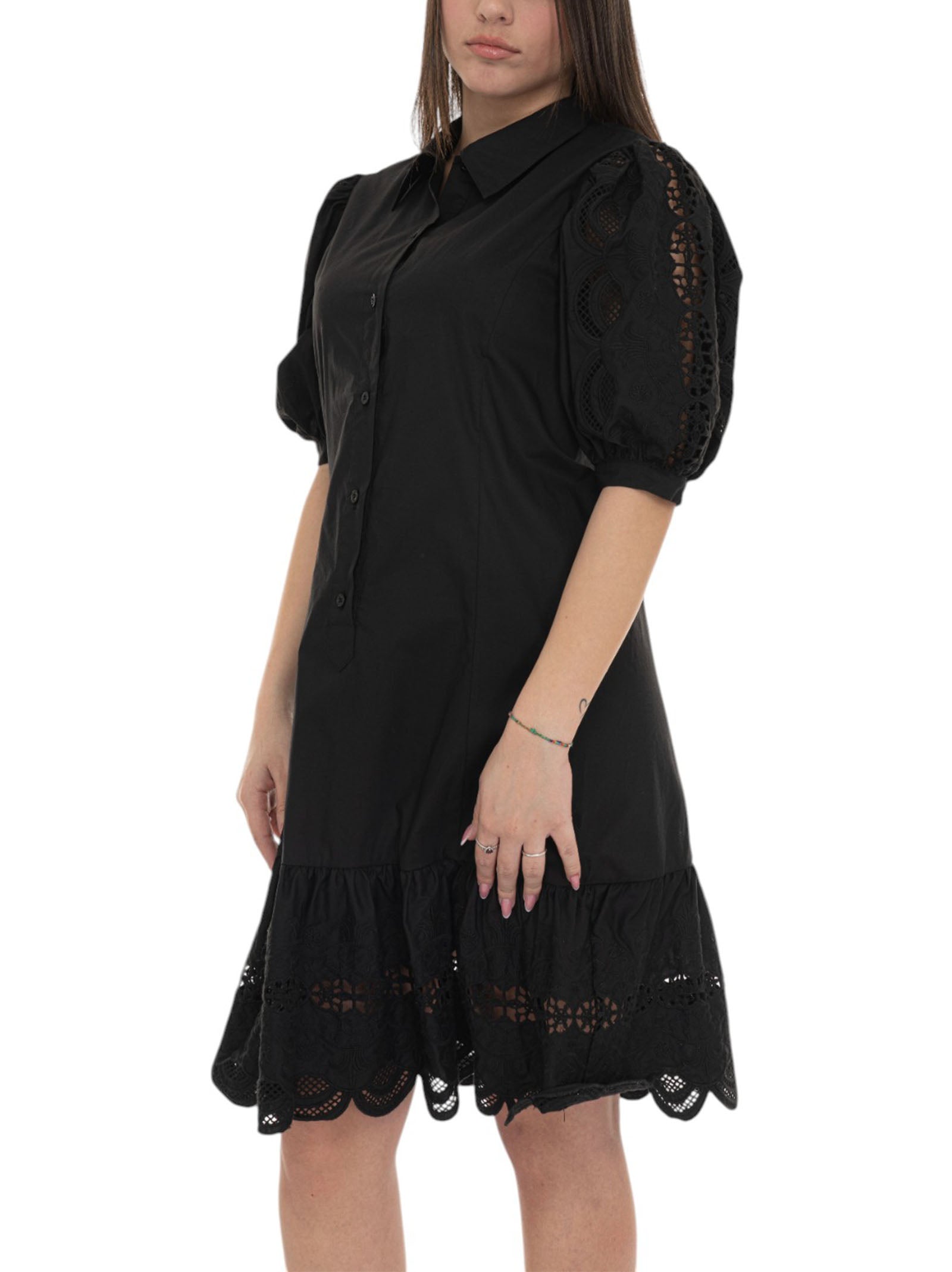 Short dress, classic collar, button fastening, short sleeves, textured workmanship, tab with logo, composition: 100% cotton, line: LIU JO.