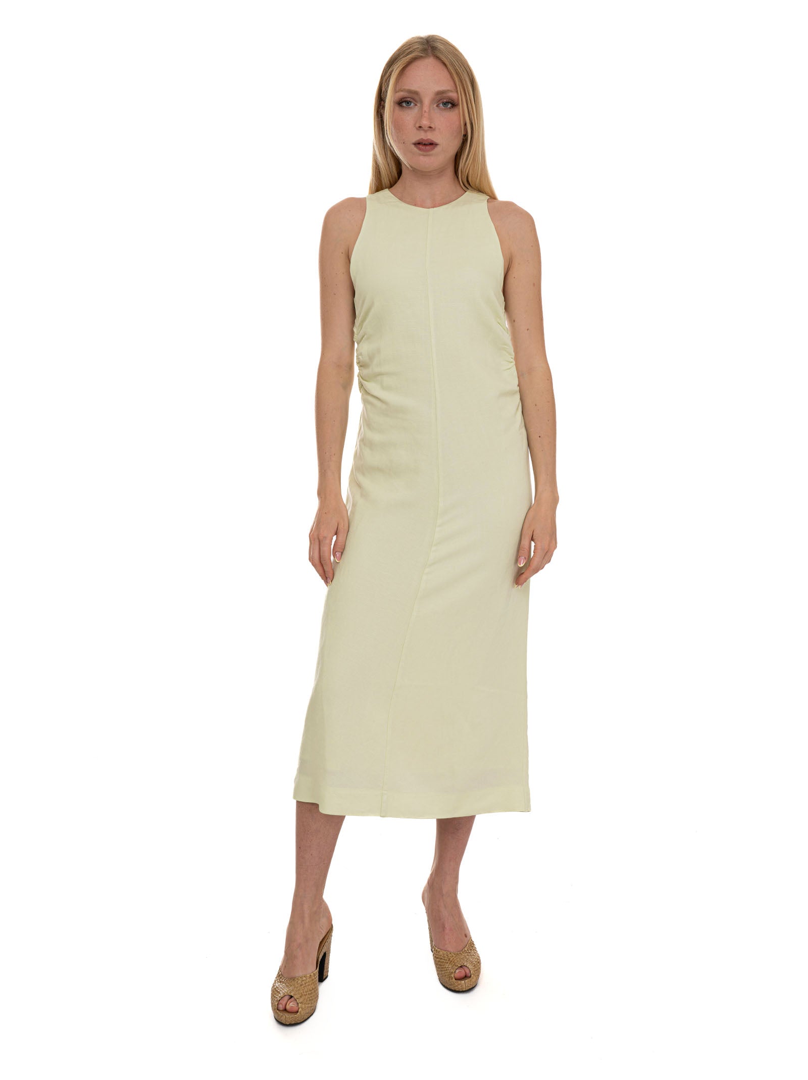 Abito da donna BOSS DELINNA, senza maniche, girocollo, arriccio in vita, chiusura con bottone sul retro, foderato, composizione: 53% lino, 47% viscosa, linea: BOSS.